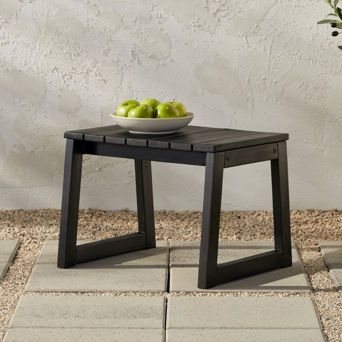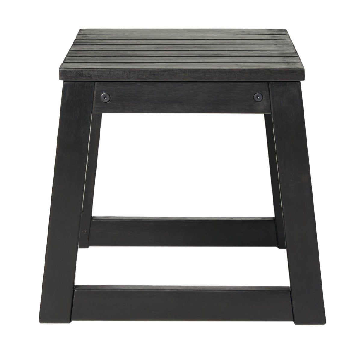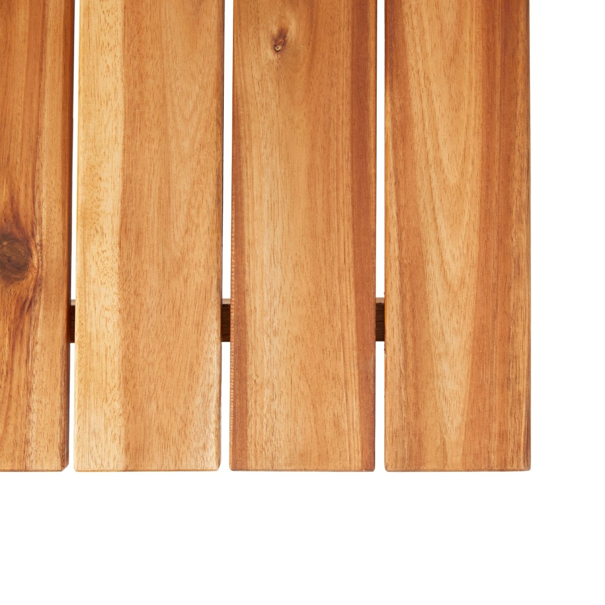 A stylish setup has never been so simple. With this slatted, solid wood side table and its chunky, trendy base, you and your guests will have a sleek space to gather 'round and chat with drinks and snacks. Let the table do the talking with its minimalist frame, solid acacia wood build, and beautiful stained finish. This occasional table is the perfect perch for citronella candles, your favorite cocktail, an array of game-night goodies, or all of the above! Whether it's inside or out, its minimalist frame and modern build will fit right in.