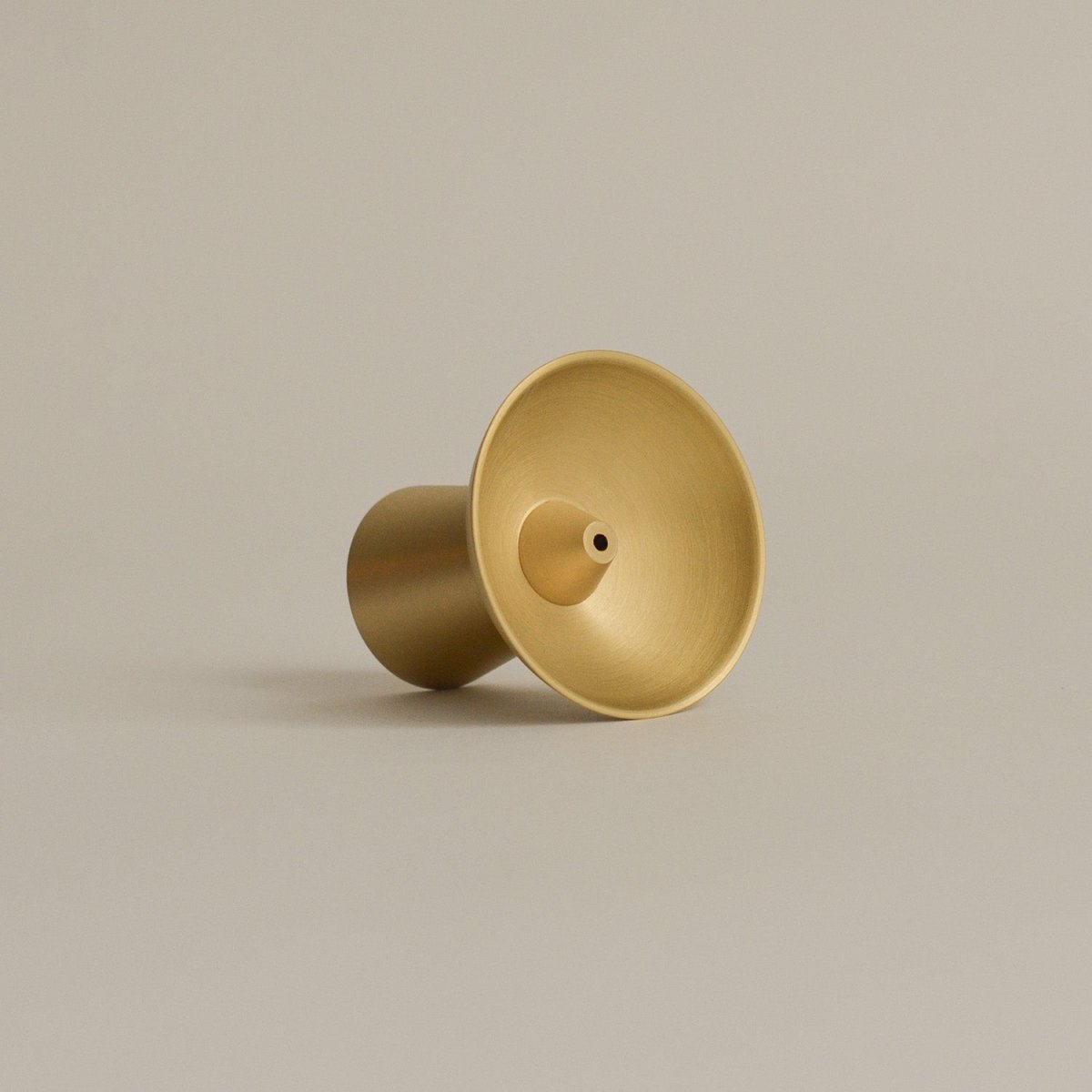 Elevate your incense rituals with this sleek and stylish modern incense holder, made from high-quality brass with a polished satin finish. Crafted in a conical form, its contemporary silhouette adds sophistication to any room, while the built-in ash catcher ensures a clean burn—helping to minimize mess during your incense rituals. With a 3mm hole compatible with most burning incense sticks, this brass incense holder combines design and functionality in perfect harmony. A beautiful statement piece on altars, shelves, bedside tables, or meditation corners.