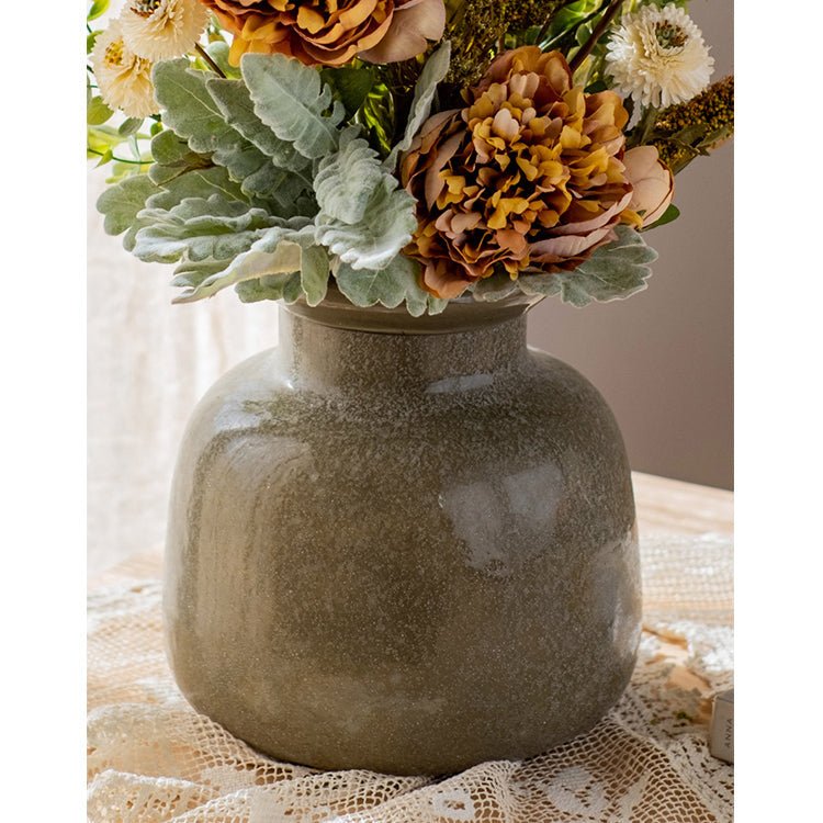 Rustic Reach Dark Green Matte Textured Glass Vase - Hand Blown 9.1