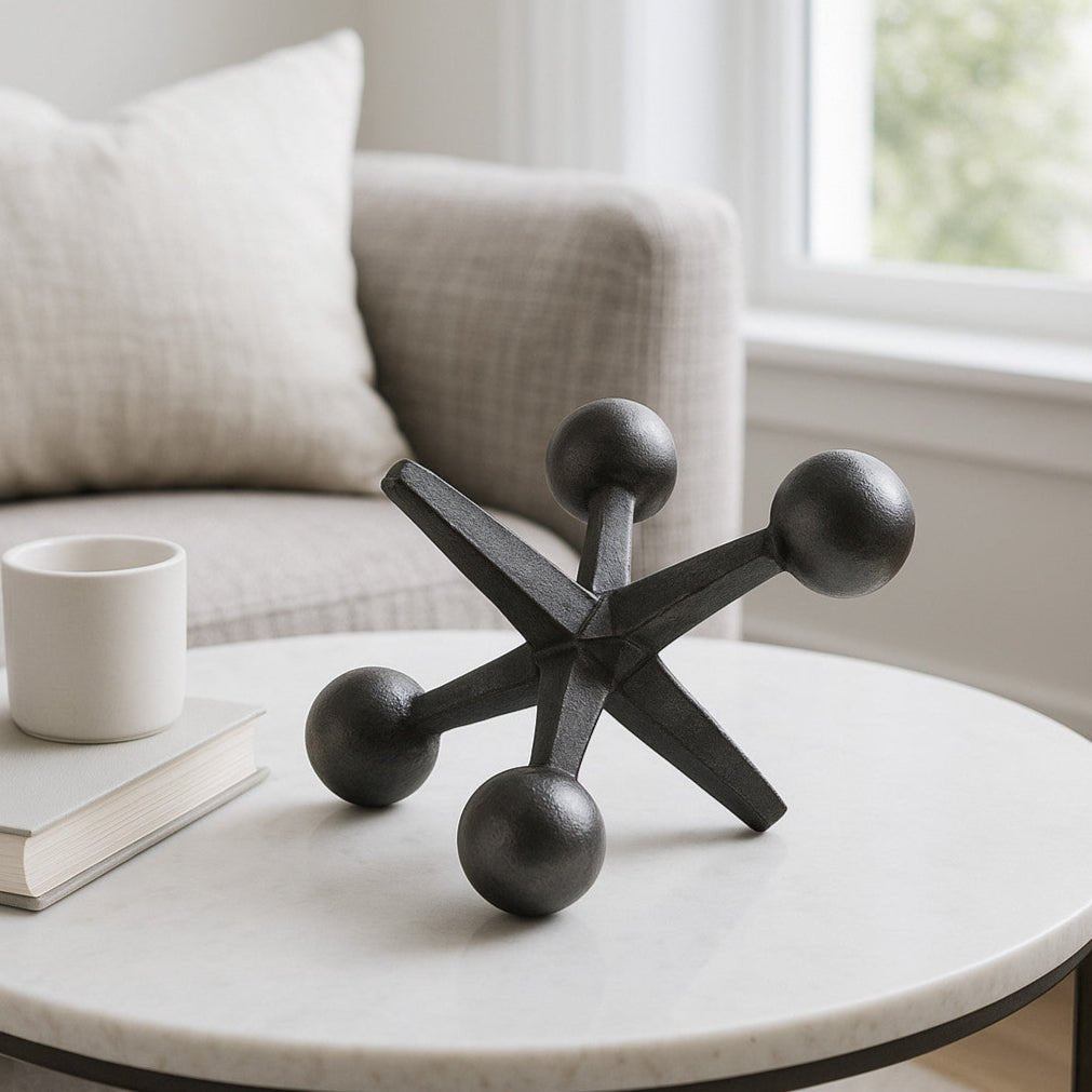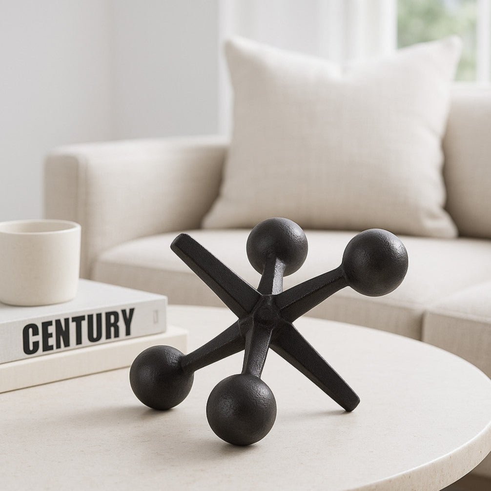 The Sagebrook Home Decorative Jack sculpture brings retro-inspired design to contemporary spaces. Crafted from lightweight aluminum with a matte black finish, this 5-inch sculptural piece serves as both an artistic accent and functional decor element.