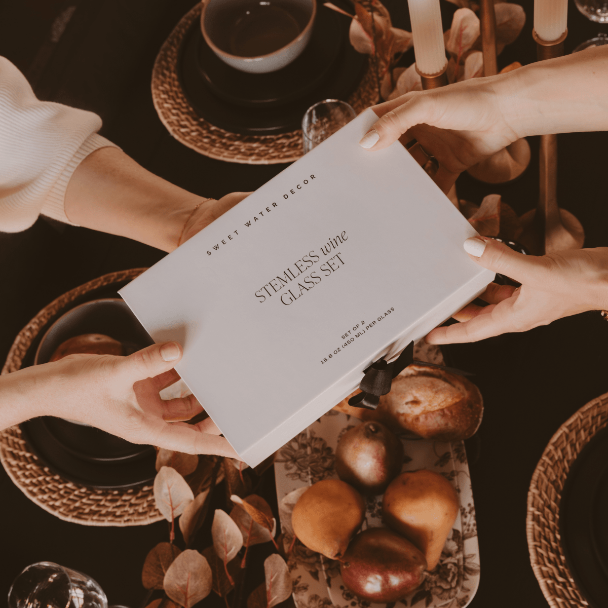 Each set arrives in a premium gift box measuring 9.2" W x 5.9" D x 3.9" H, secured with a satin ribbon tie closure. The thoughtful packaging makes this set ready for gifting without additional wrapping, suitable for bridal showers, wedding celebrations, or hostess occasions.