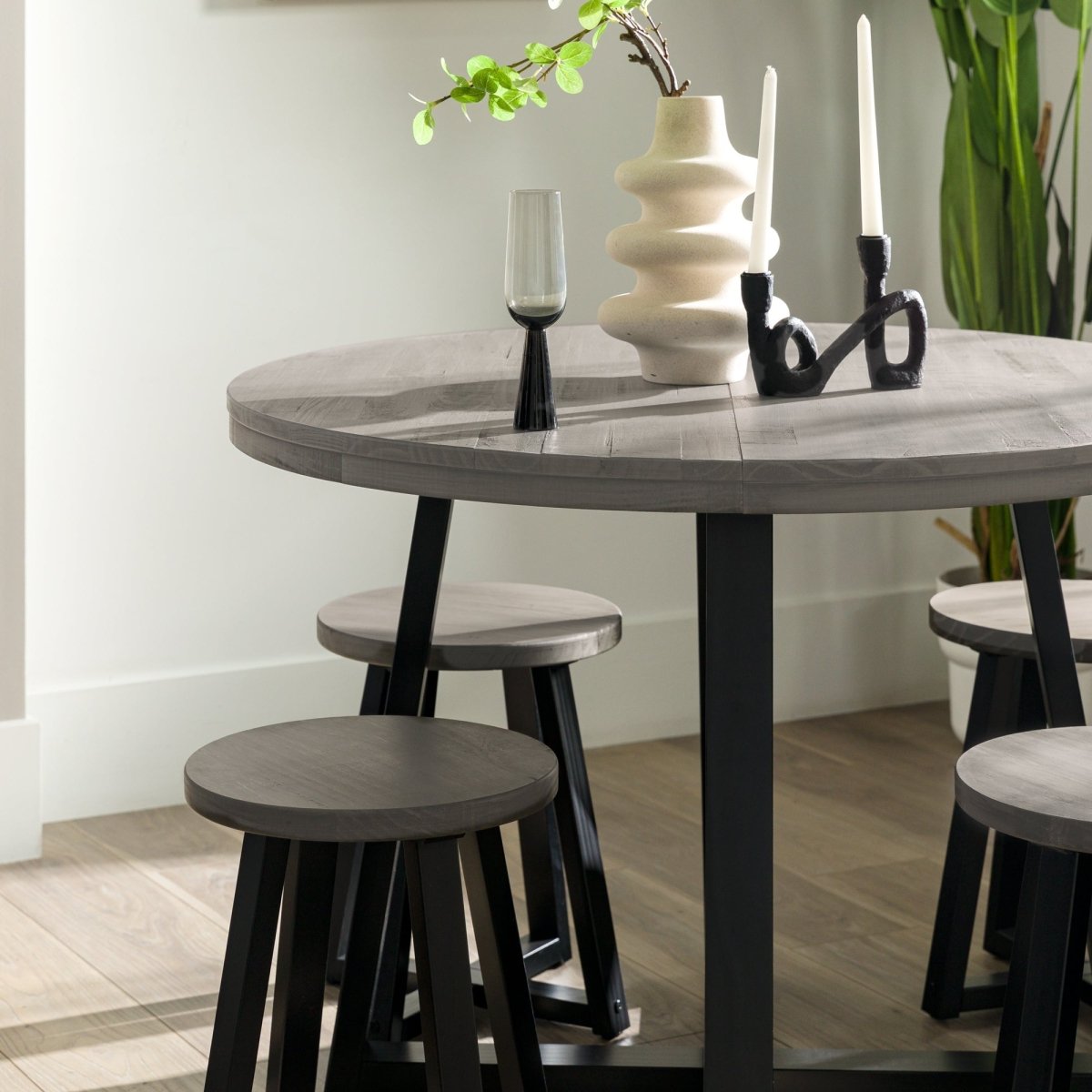 Walker Edison Durango Solid Pine Round Dining Table - Distressed 36