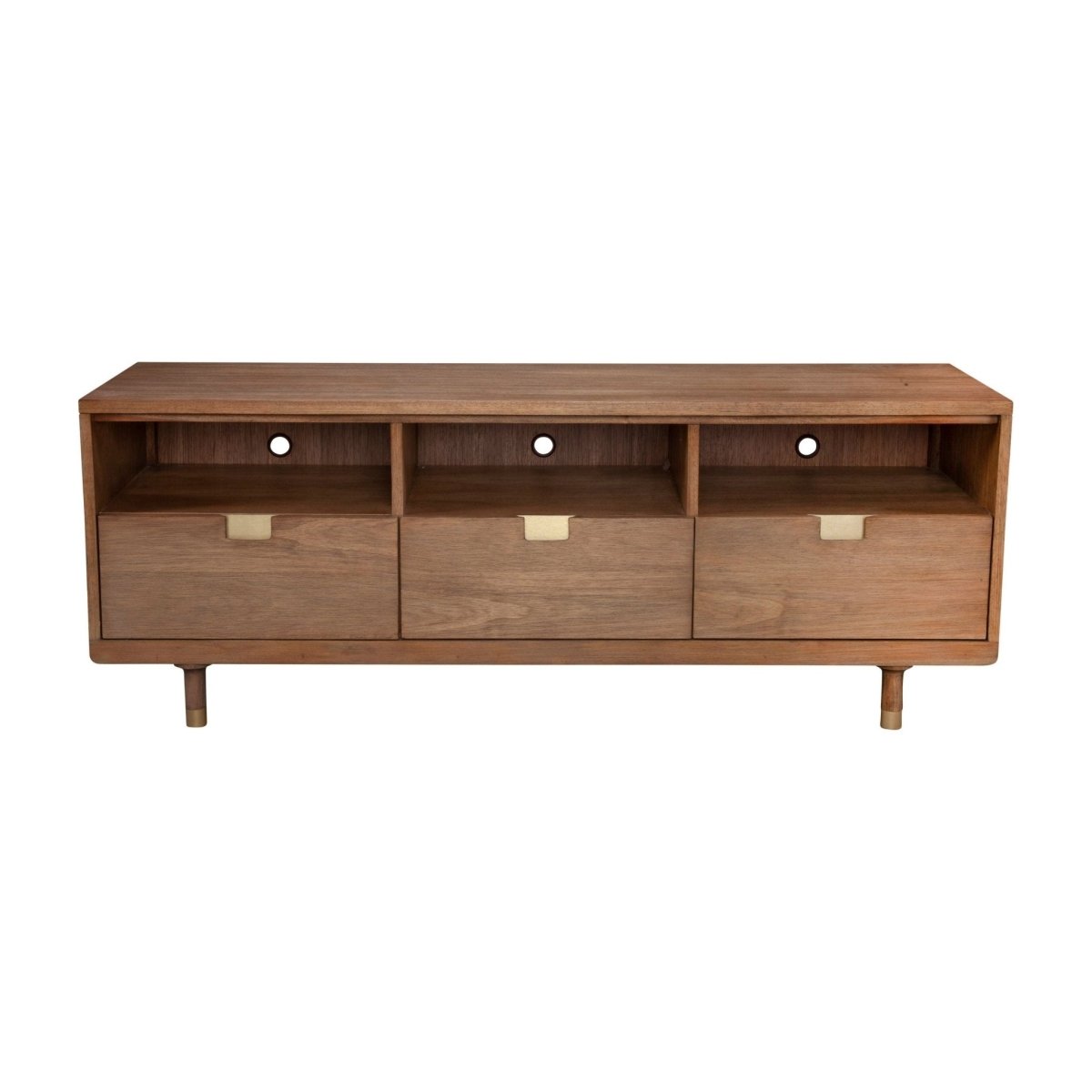 Whether it's movie night or time for the big game, your TV becomes the focal point of your home. The Easton 64"" Media Console in sand (beige) finish, is made from beautiful Mahogany, a clean-lined rectangular silhouette, with lots of design appeal. Three storage drawers and wire management makes this a functional piece. Accommodate up to a 70-inch TV.