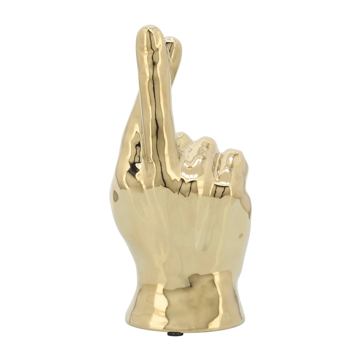 Sagebrook Home Fingers Crossed Hand Sculpture in Gold, 8