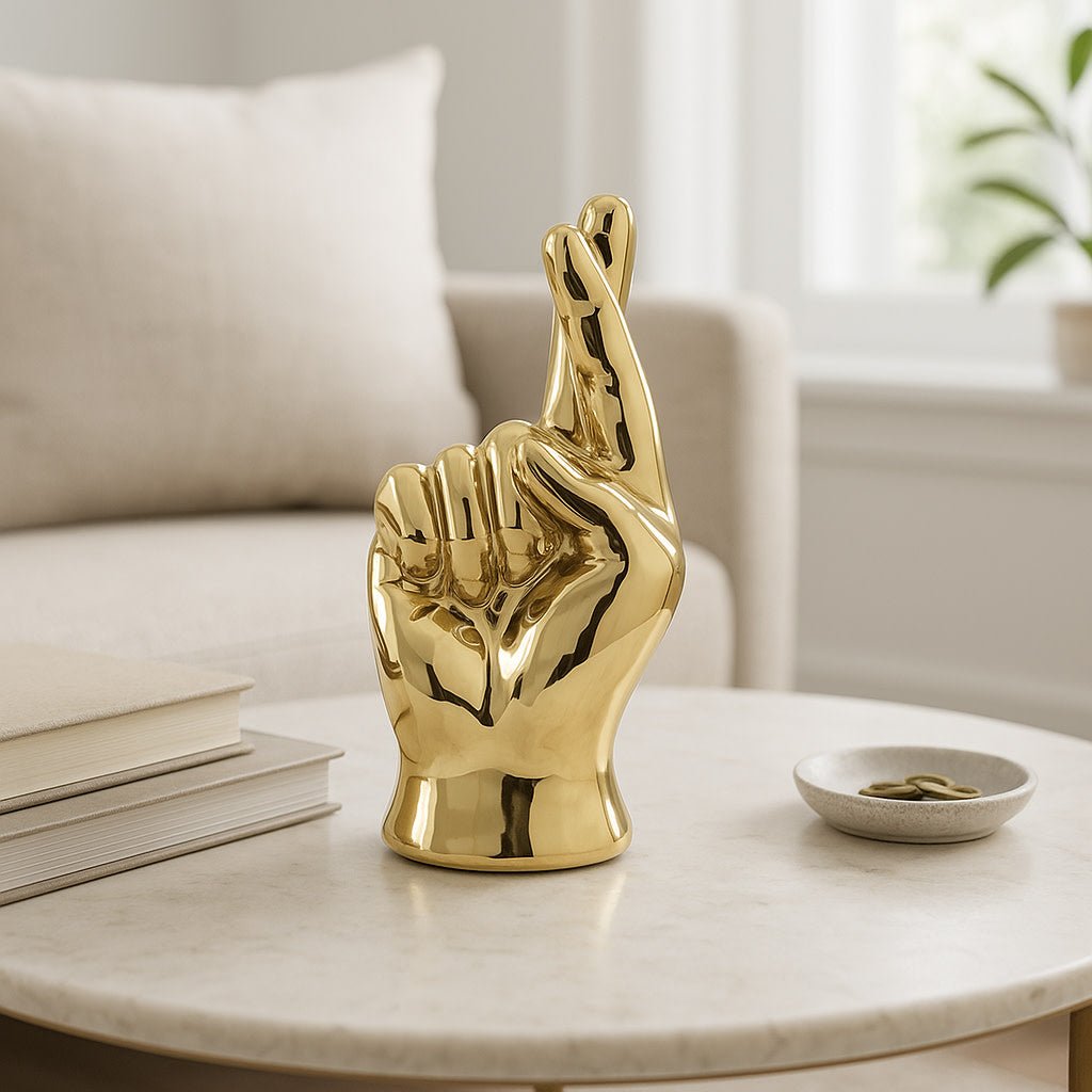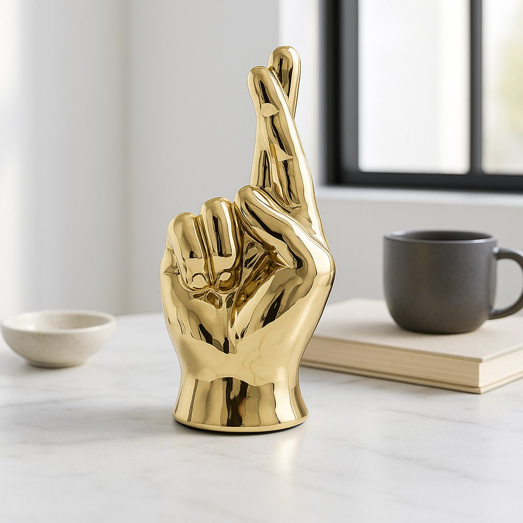 Gold Ceramic Hand Sculpture Fingers Crossed 8" Good Luck Figurine