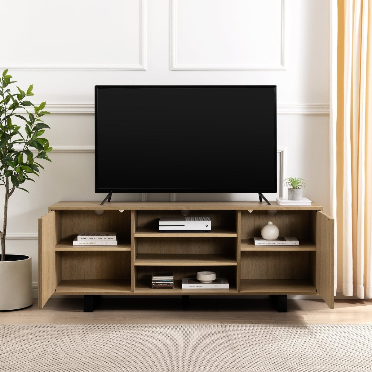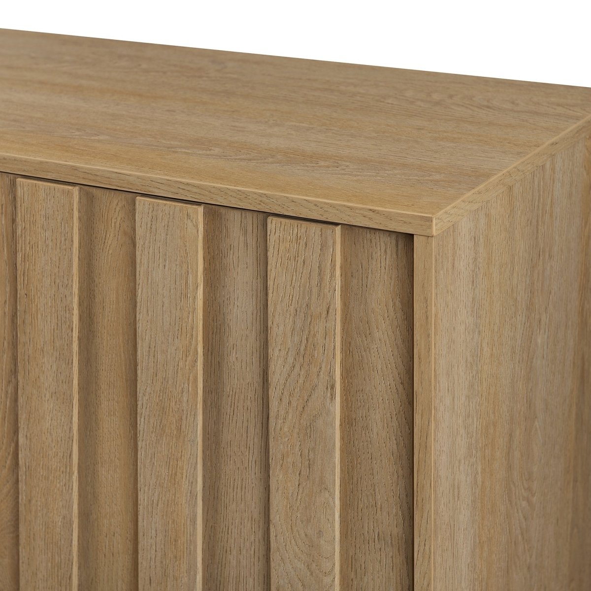 We know you love the classics, but this TV stand just took transitionally timeless up a notch. With its ultra-modern, metal sled legs and grooved-door design, this piece will sit pretty in any room. Curate an aesthetic entertainment space with adjustable shelving to house your dinnerware or media, and three cord management ports to help keep your tech tidy. With a warp-resistant MDF build and stunning laminate finish, this piece is the perfect finishing touch to bring your Scandi, Japandi, or coastal-inspired space together.