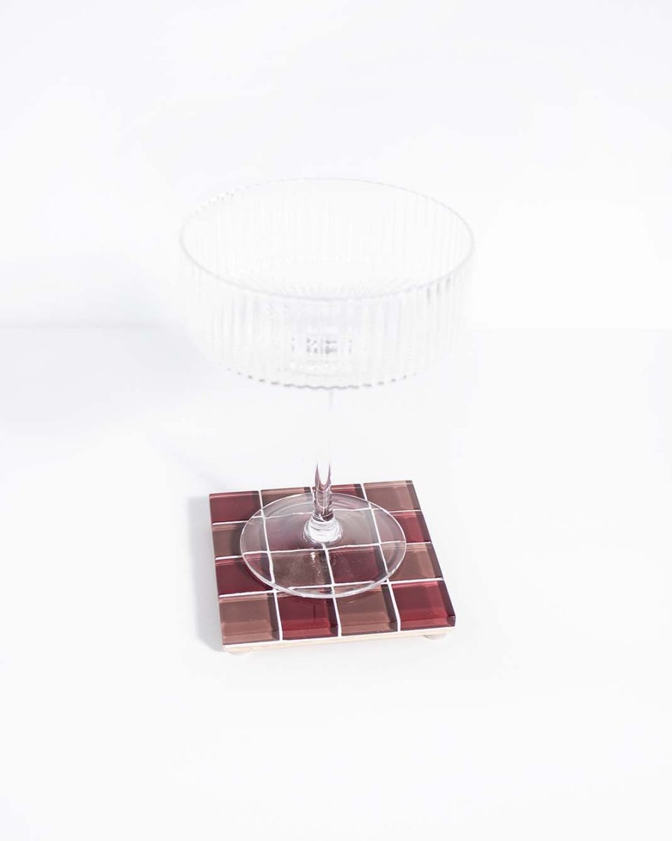 Each coaster is individually handcrafted, which means your piece may have slight variations in finish - a characteristic of authentic handmade products. This artisanal approach ensures attention to detail while creating functional art for your home. The glass tile construction provides a smooth surface that's easy to clean and maintain.