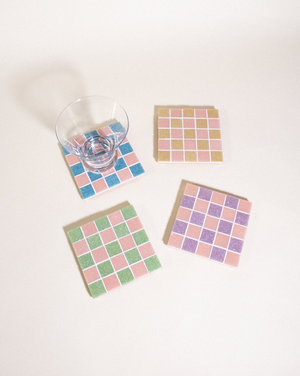 These coasters resist liquid damage and surface scuffs, maintaining their appearance through repeated use. The glass tile material provides a smooth, easy-to-clean surface that wipes down quickly with a soft cloth. Beyond their practical function, they double as photo props for social media content or product photography.