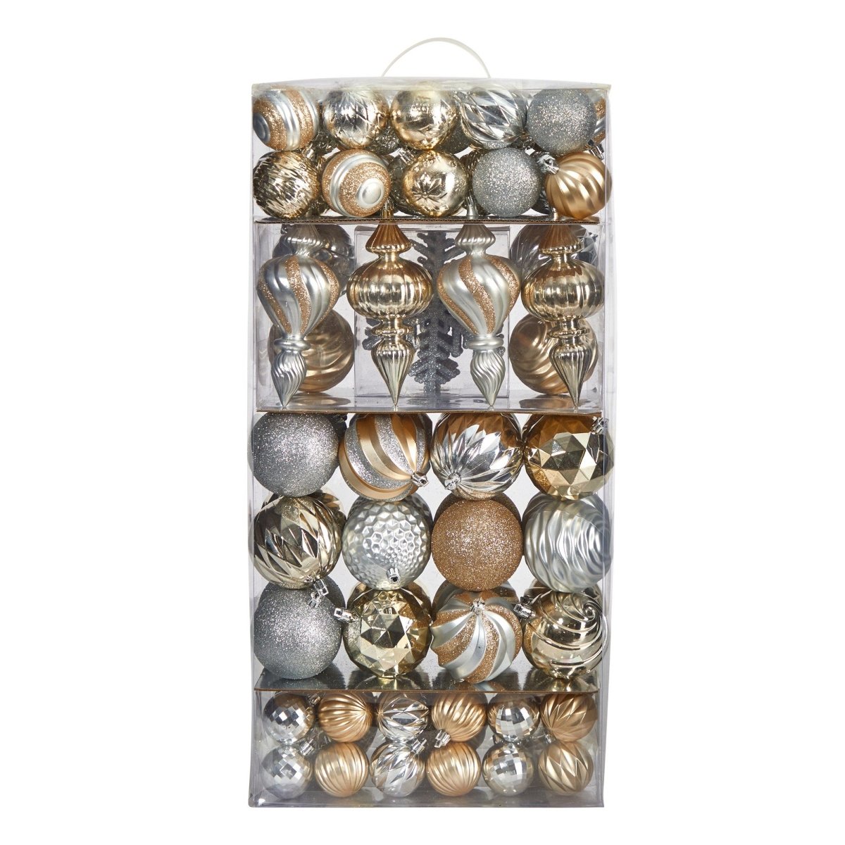 Get into the holly jolly spirit this holiday season with an easy, go-to set of shatterproof Christmas tree ornaments. Perfect for accenting and filling in bare spaces in Christmas trees, this set of 81 holiday-inspired ornaments comes in bright seasonal hues and reflects a glass-like quality - without the fear of damage should they fall or drop. Arriving in a reusable tray for continual seasonal use and storage, they’re perfect for mixing and matching with other similar colors and themes. Note, some of them come with glitter for a dazzling look.