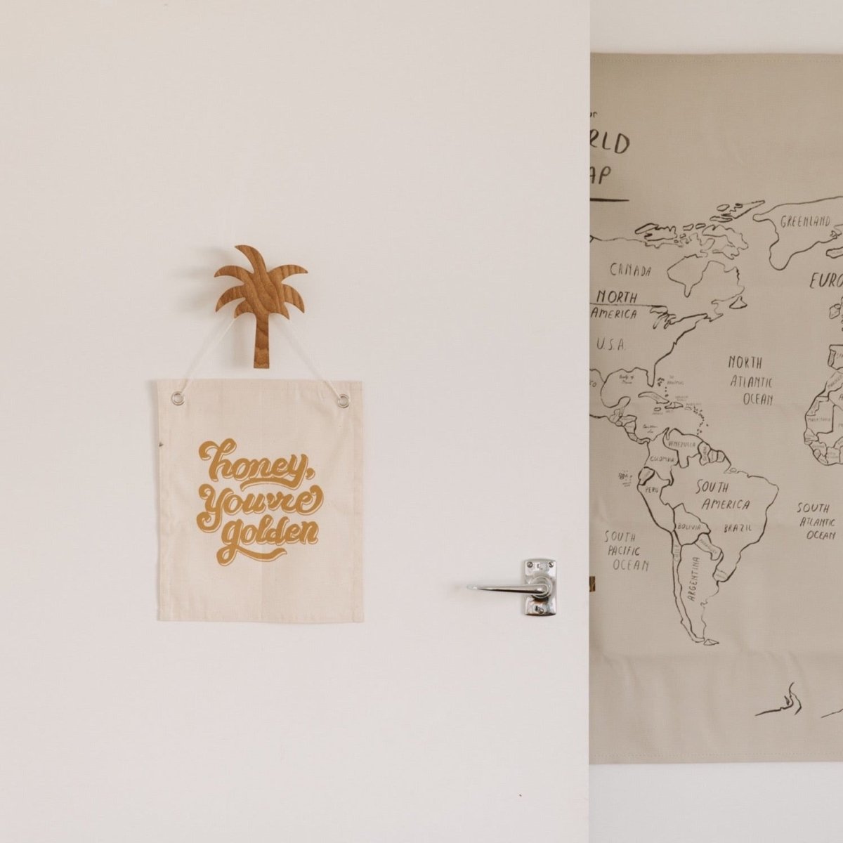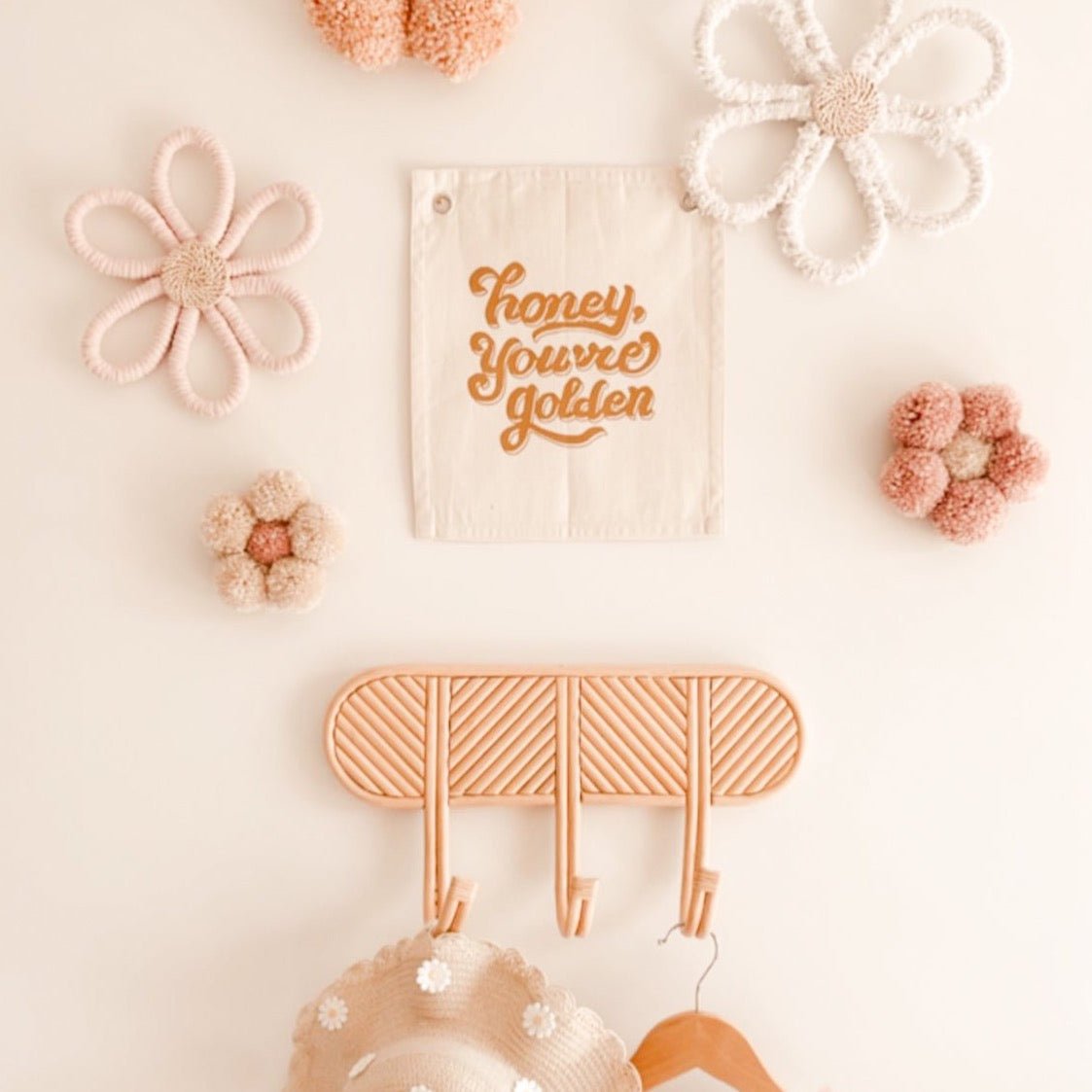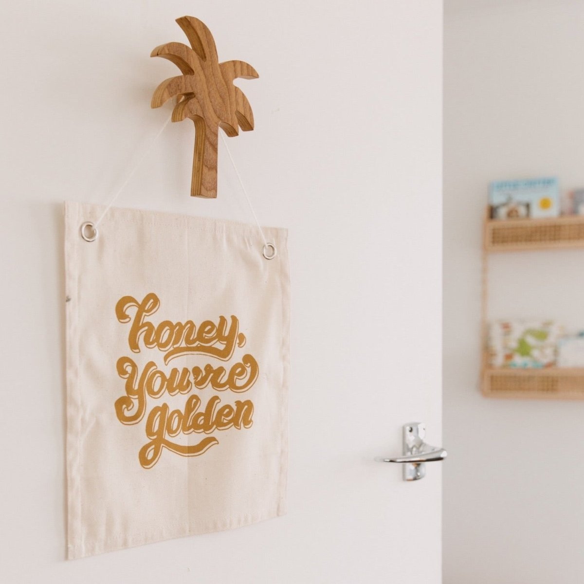 The neutral natural canvas background allows this banner to work with multiple design schemes. Use it in children's spaces for daily encouragement, in bedrooms as a reminder of self-worth, or in common areas to spread positivity. The "Honey You're Golden" message delivers affirmation without being overly specific to age or gender.