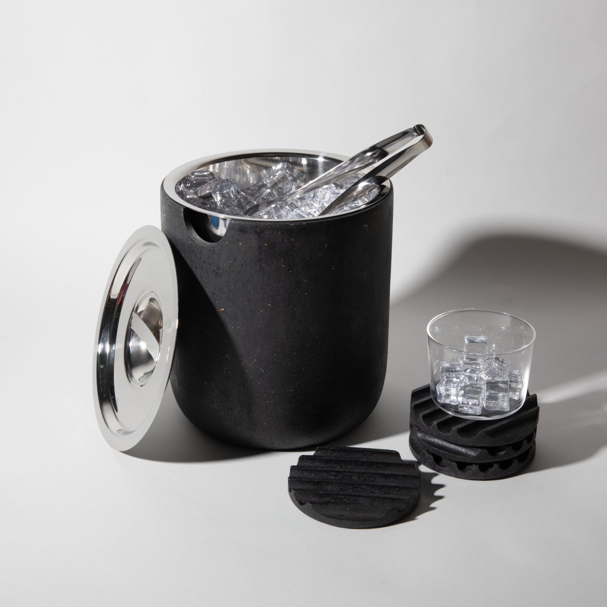This trendy black terrazzo ice bucket features a stainless steel insert and lid, ideal for keeping ice chilled. For a complete and elegant set, pair with our Ice Bucket Tray (sold separately). Ice bucket tongs are available for purchase separately.