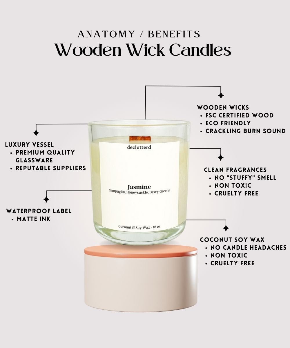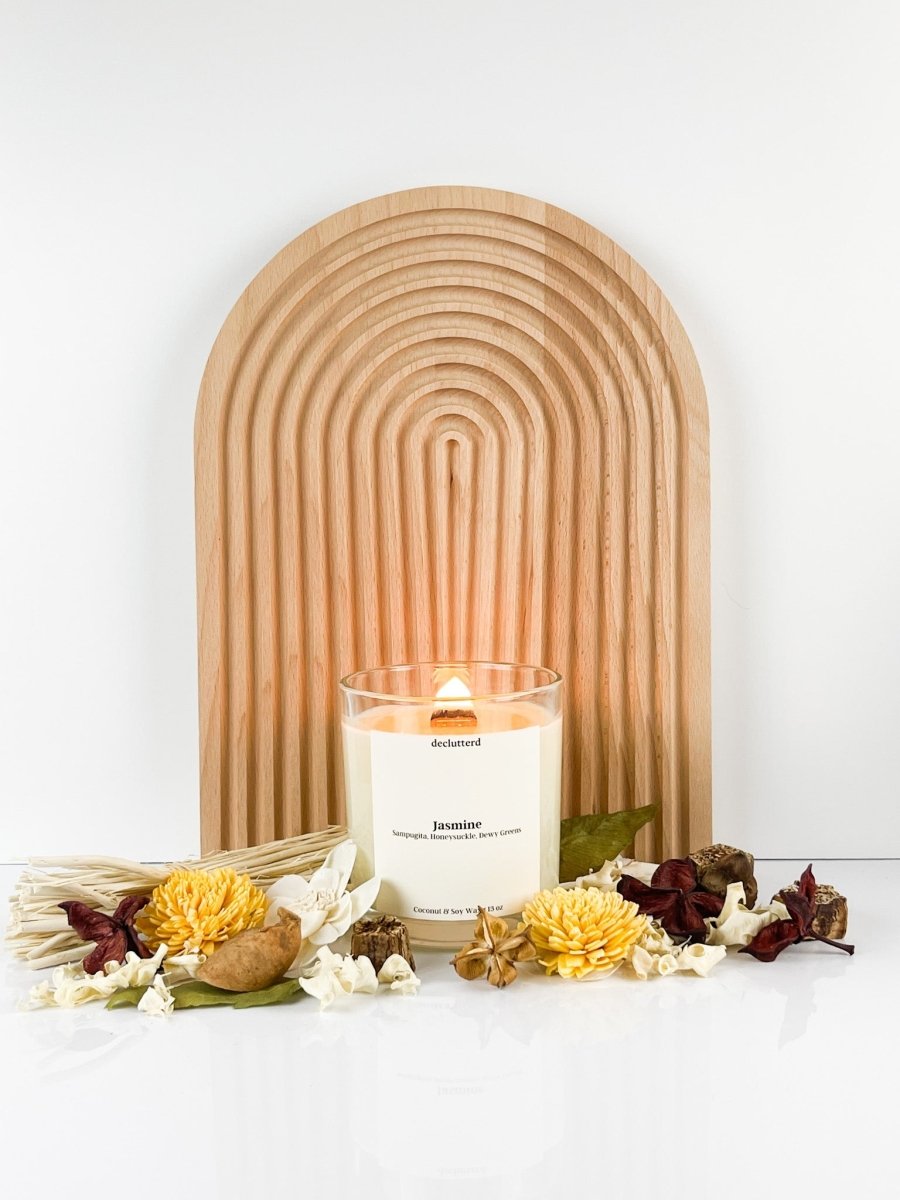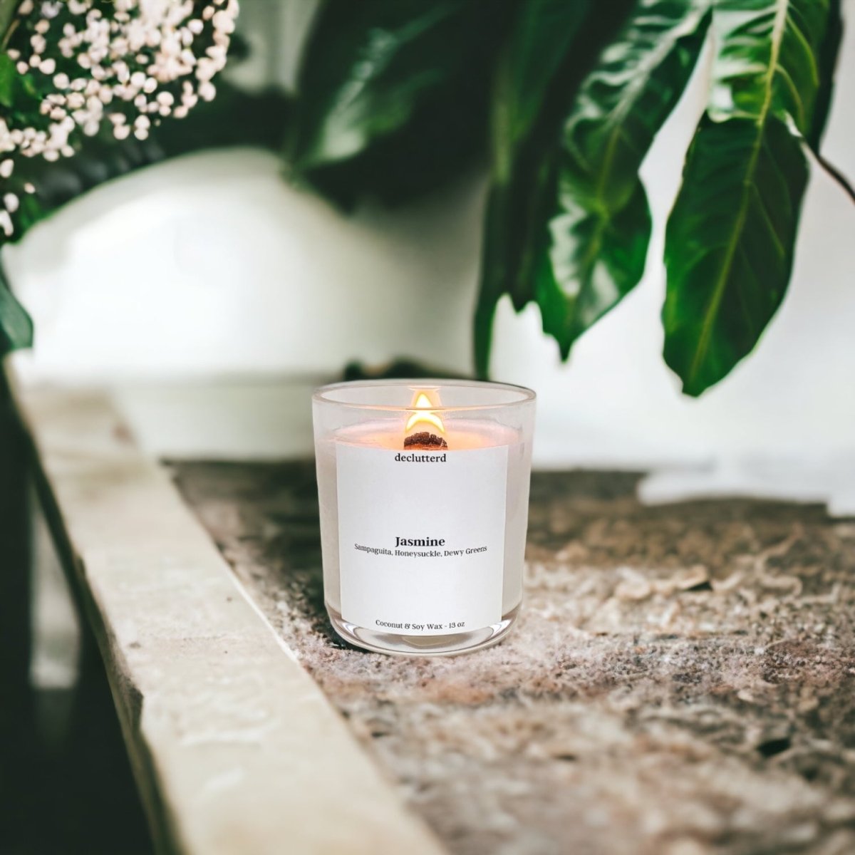 declutterd Jasmine Wood Wick Candle - Coconut Soy Wax with Crackling Sound