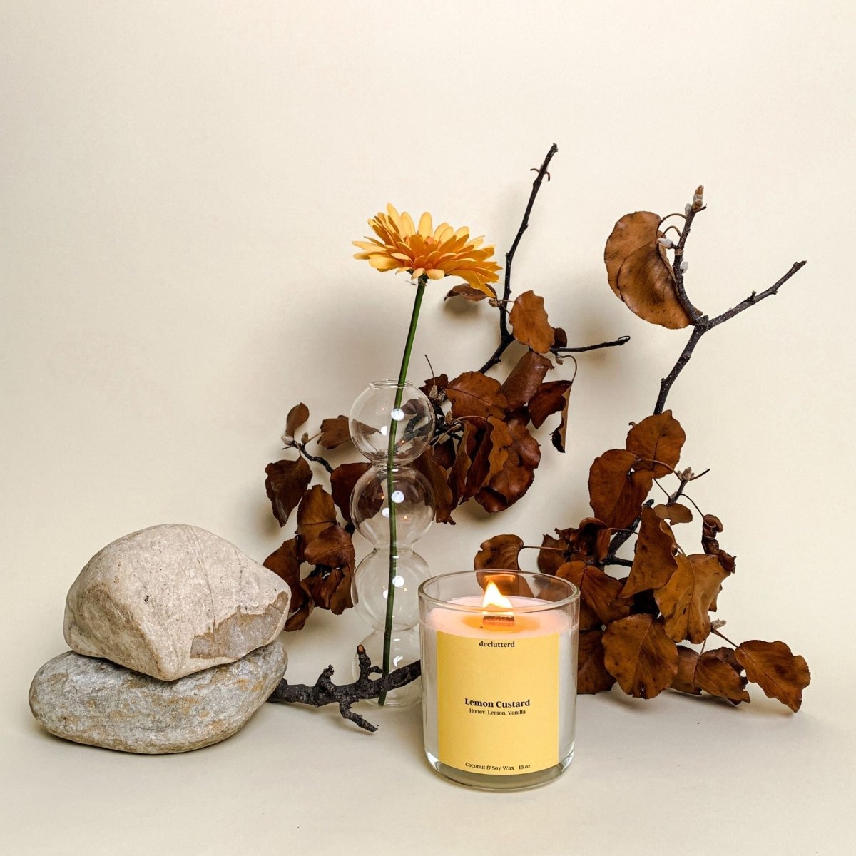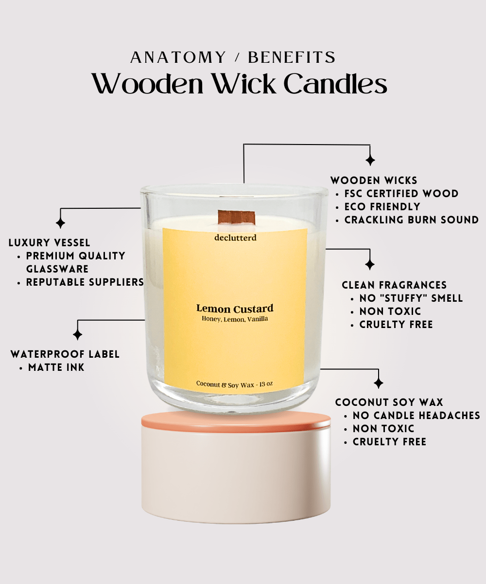 declutterd Lemon Custard Wood Wick Candle - Coconut Soy Wax 8oz/13oz