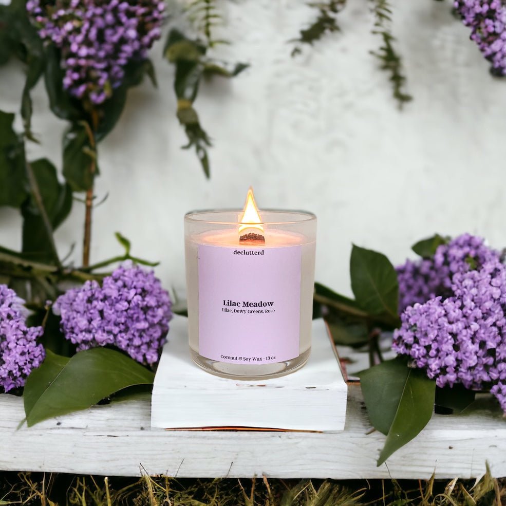 declutterd Lilac Meadow Wood Wick Candle - Coconut Soy Wax, 50 - 65 Hour Burn