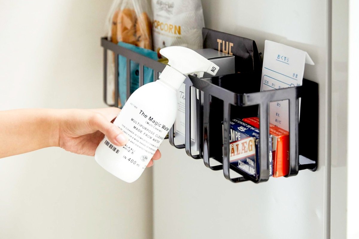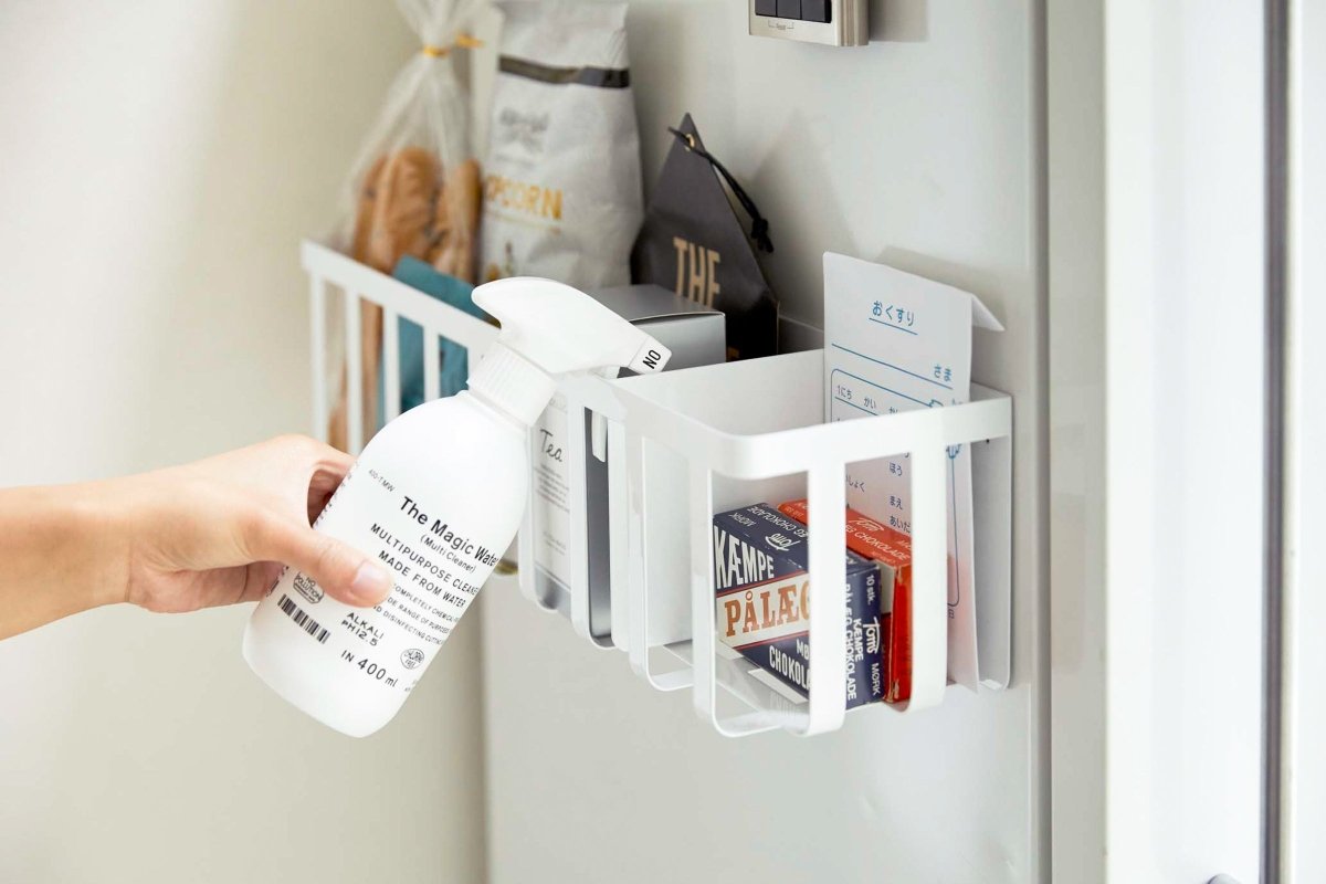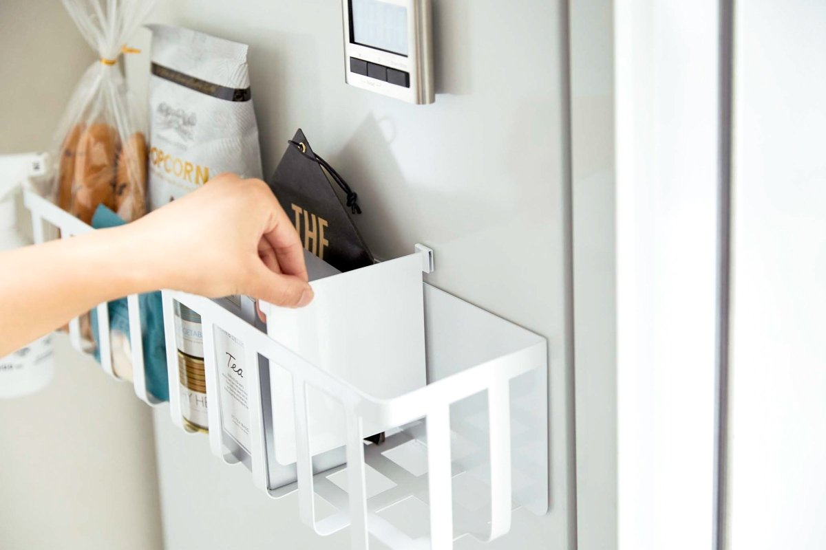 What better place to store your everyday kitchen essentials than the side of your refrigerator? No more rummaging through drawers and cabinets; just keep your must-haves close at hand. One centralized basket for your spices, oils, and other kitchen doo-dads.