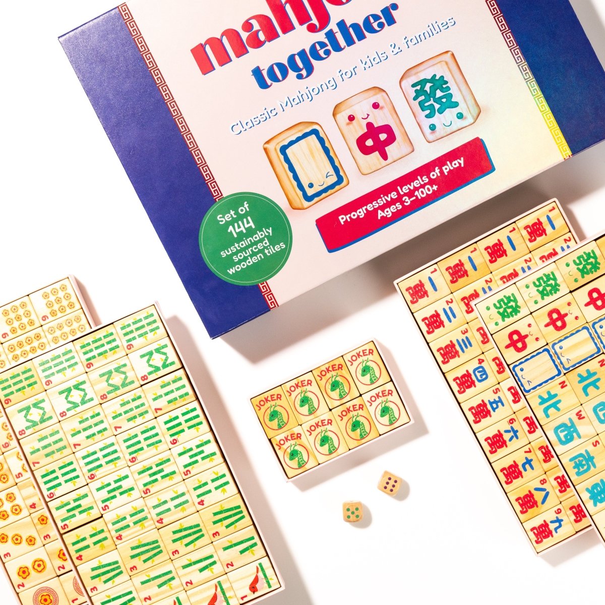This add-on set features 8 Joker Tiles designed to match the signature Mahjong Together style. Made of sustainably sourced wood with non-toxic ink, these tiles seamlessly integrate with your existing Mahjong Together set. Use them for American Mahjong, house rules, or your own wild tile variations. Perfect for fans of American Mahjong who want a family-friendly set.