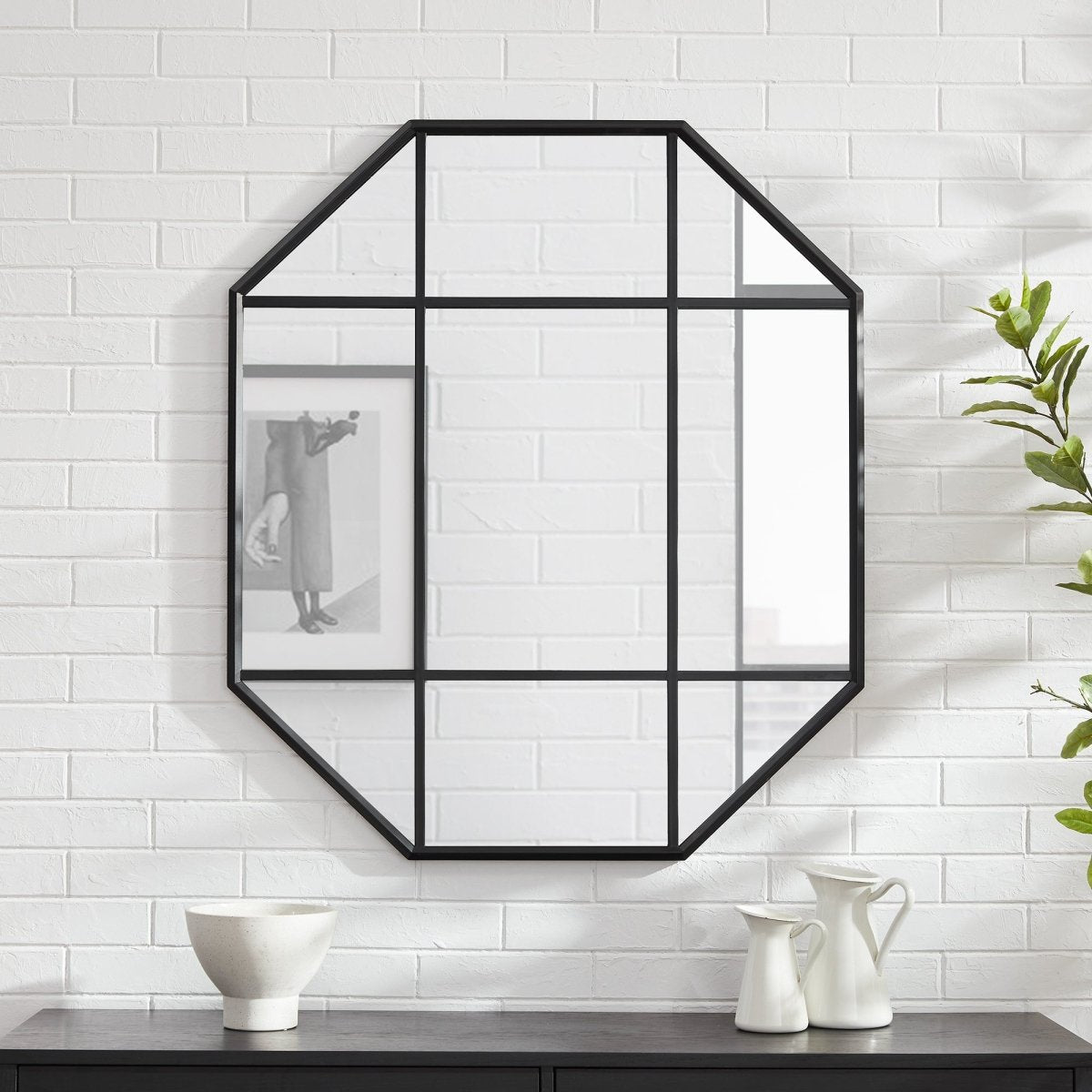 Curate a modern interior with this windowpane-style wall mirror. Accented by a sanded black metal frame, this piece will reflect your contemporary style and add a unique, minimalist touch wherever it’s on display. Made from tempered safety glass, this piece will rest safely above any alcove, whether that be your bathroom cabinet, entryway cabinet, hallway, or dining room buffet.