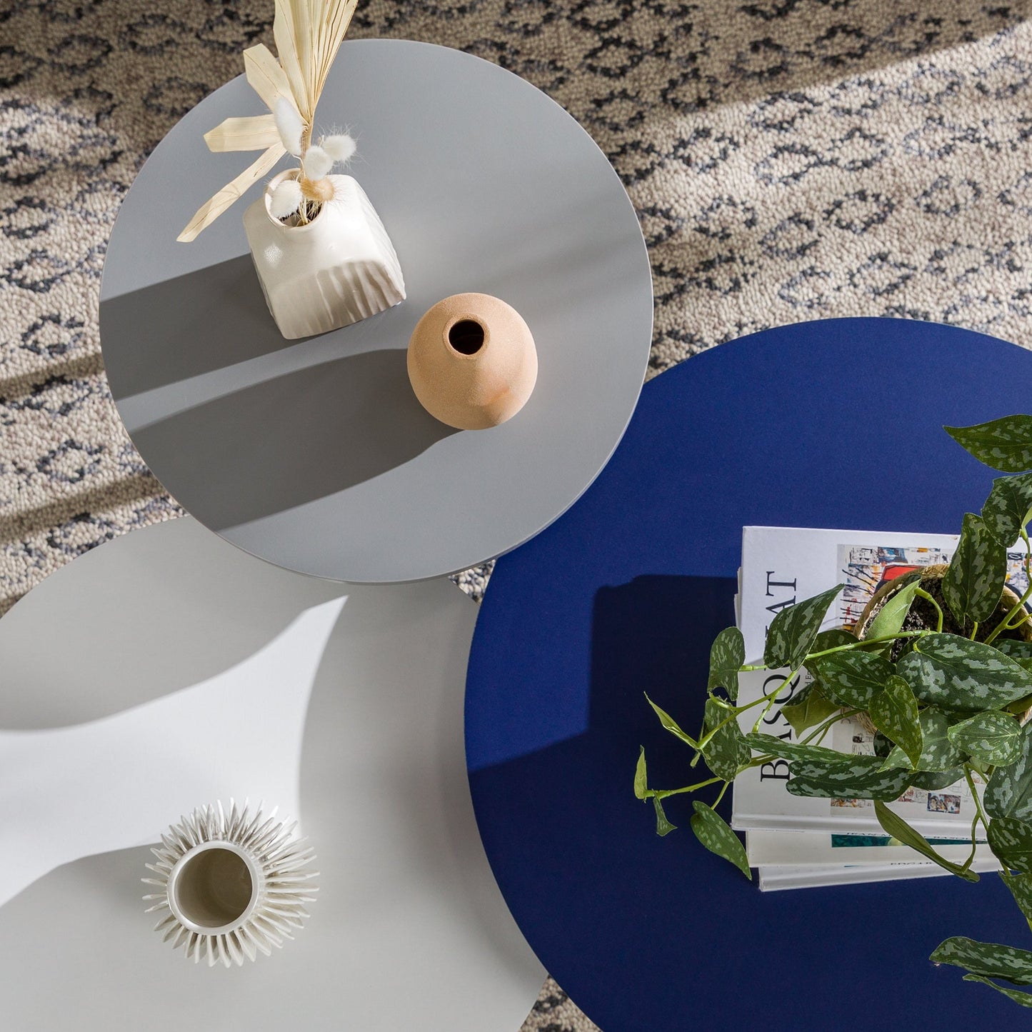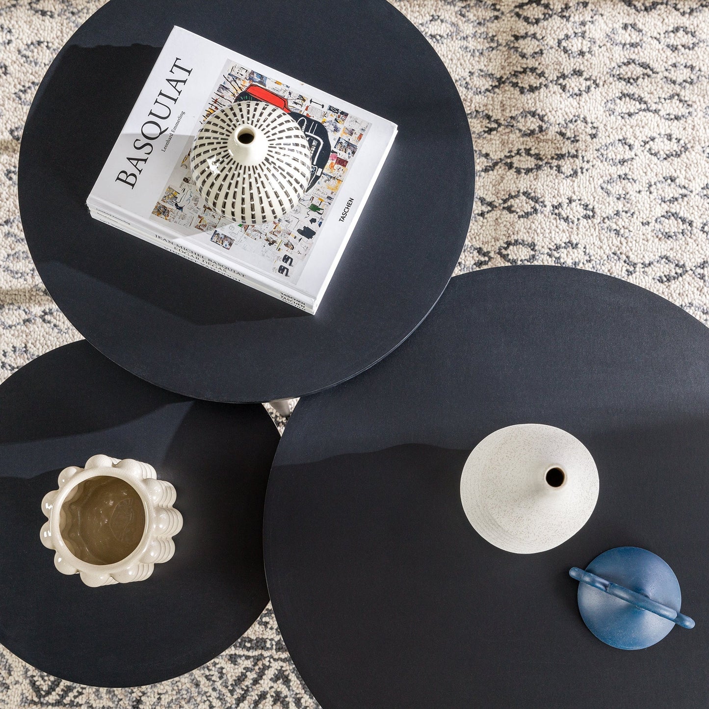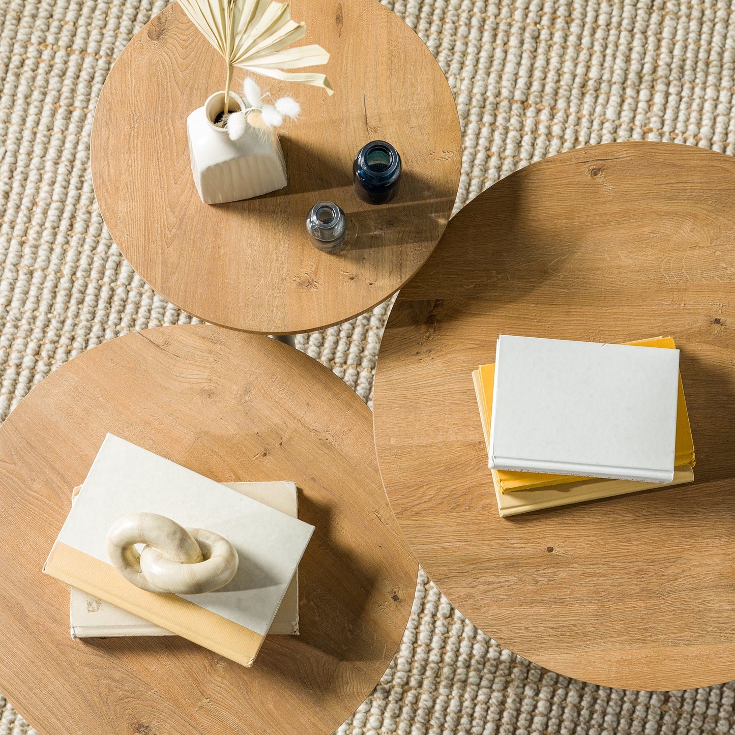 Modern Round Nesting Coffee Tables with Tapered Legs, Set of 3