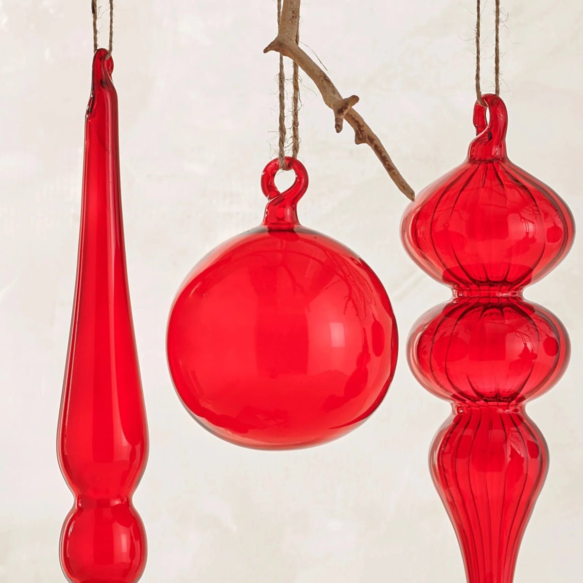 Moroah™ Mouth Blown Red Glass Ornament, Set of 4