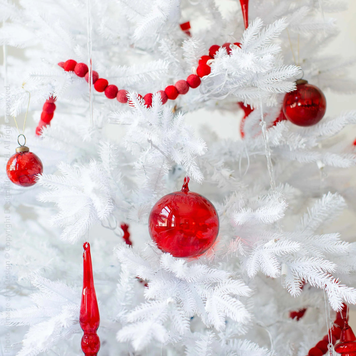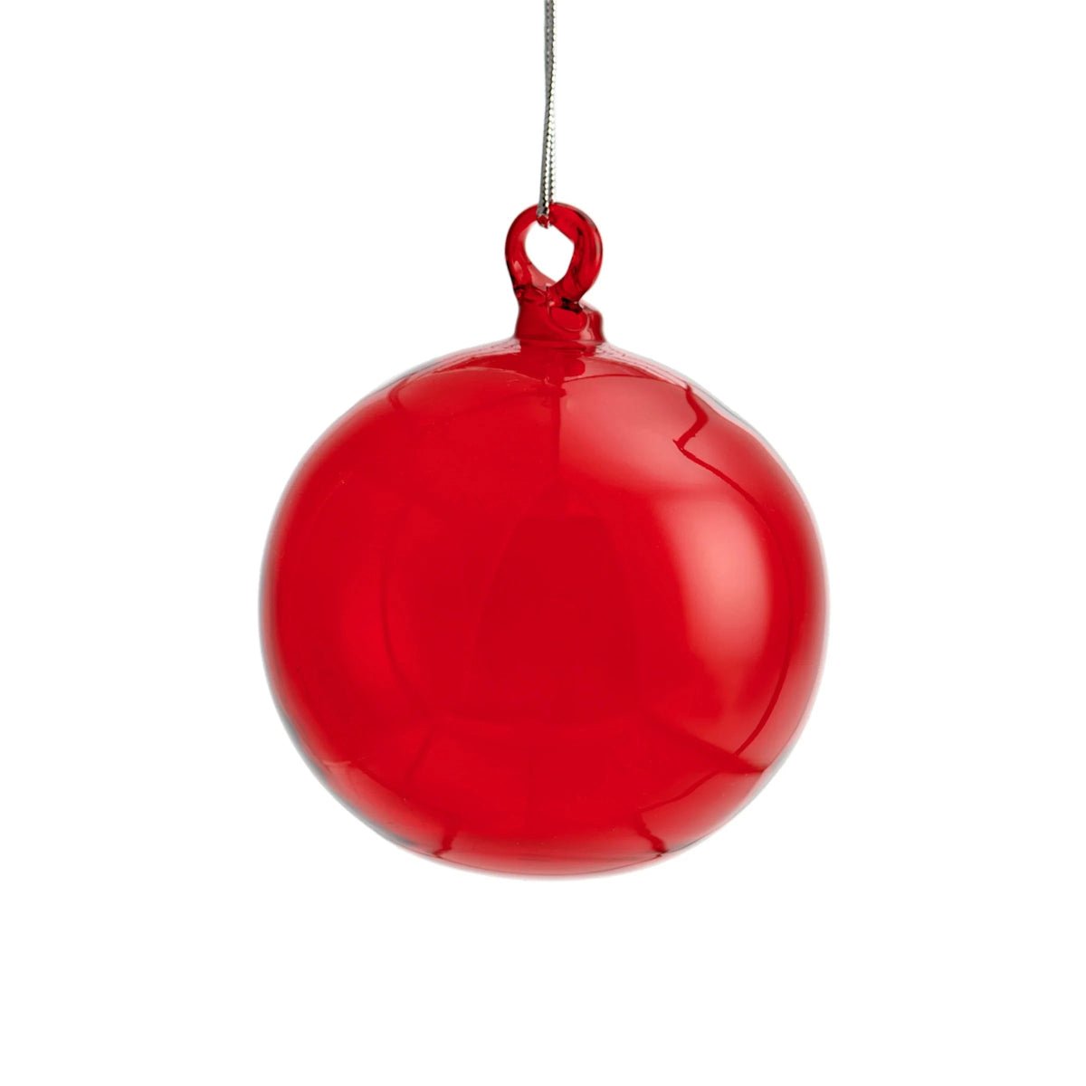Elevate your holiday decor with the timeless beauty of the Moroah™ Red Glass Ornament. Hand-blown by skilled artisans in India, each red glass ornament in this set of four features a rich, translucent finish that adds warmth and elegance to any Christmas tree. The classic round shape and vibrant red hue make these ornaments a traditional favorite, while the handcrafted glass loop detail highlights the artistry and craftsmanship behind every piece.