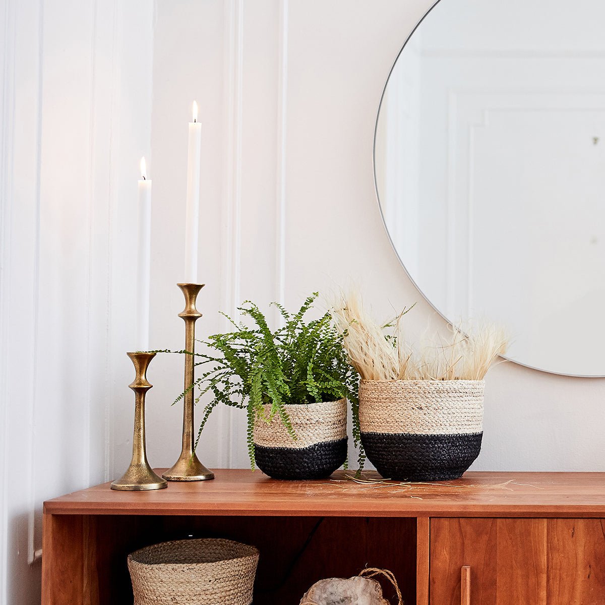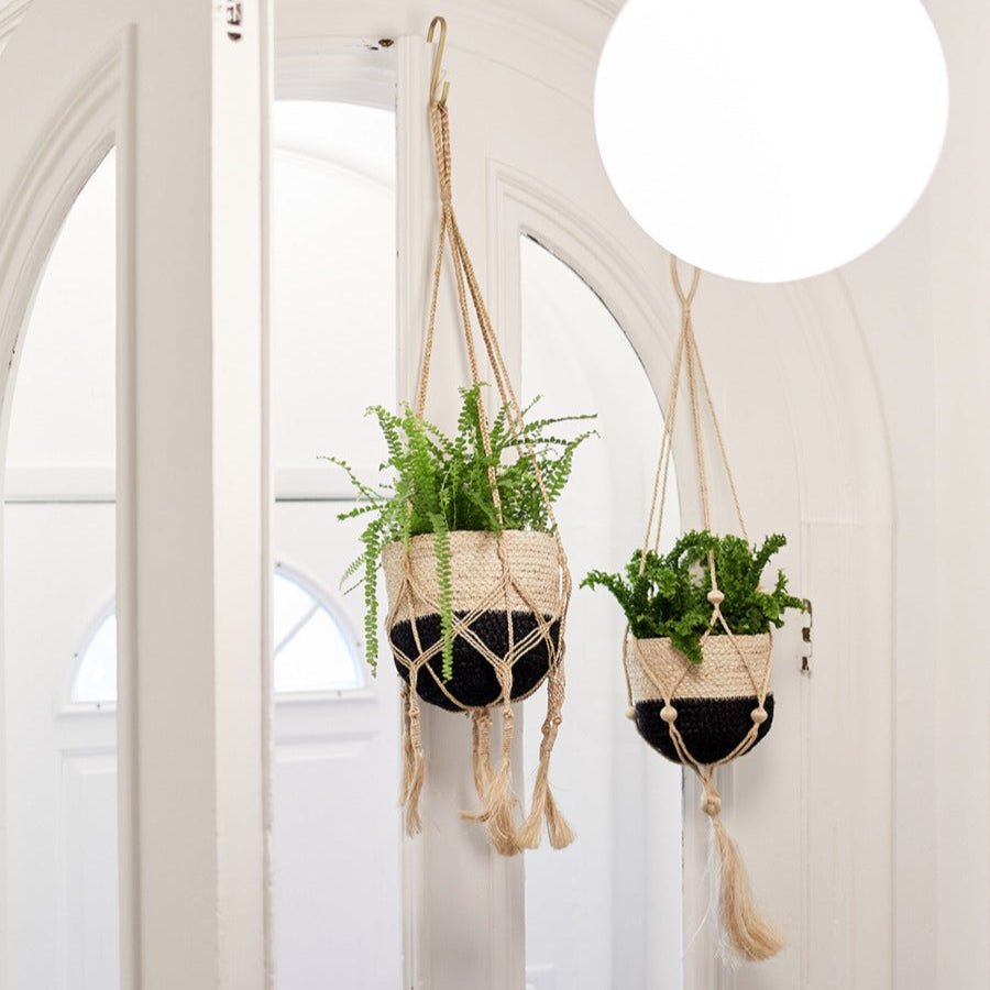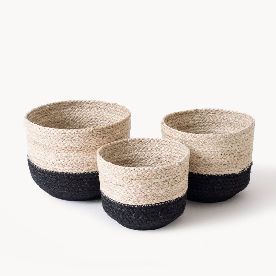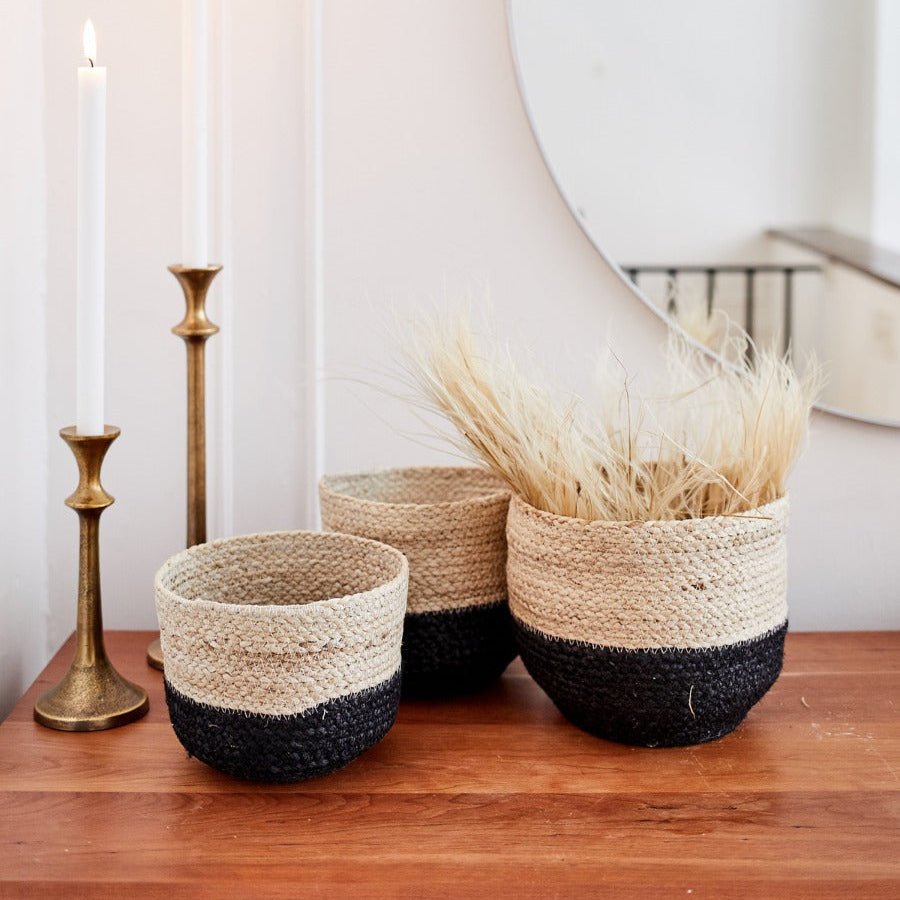 Handwoven from Jute, the Naiya Braided Jute Cachepot basket comes in three different sizes. Jute's raw texture with soft black's simple design will add natural warmth to your space. Each product is designed and curated by Korissa, sustainably handmade by Fair Trade artisans in Bangladesh.