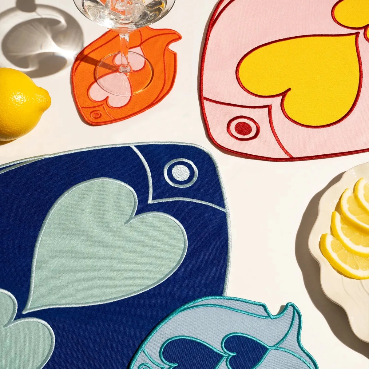 Infuse your entertaining with serene coastal elegance through these delightful fish-motif cocktail coasters. Crafted from a premium linen-cotton blend and adorned with soft light blue silk thread embroidery, each coaster in this set of four captures the tranquil beauty of the sea. They're more than table protection — they're a breath of fresh air for your home.