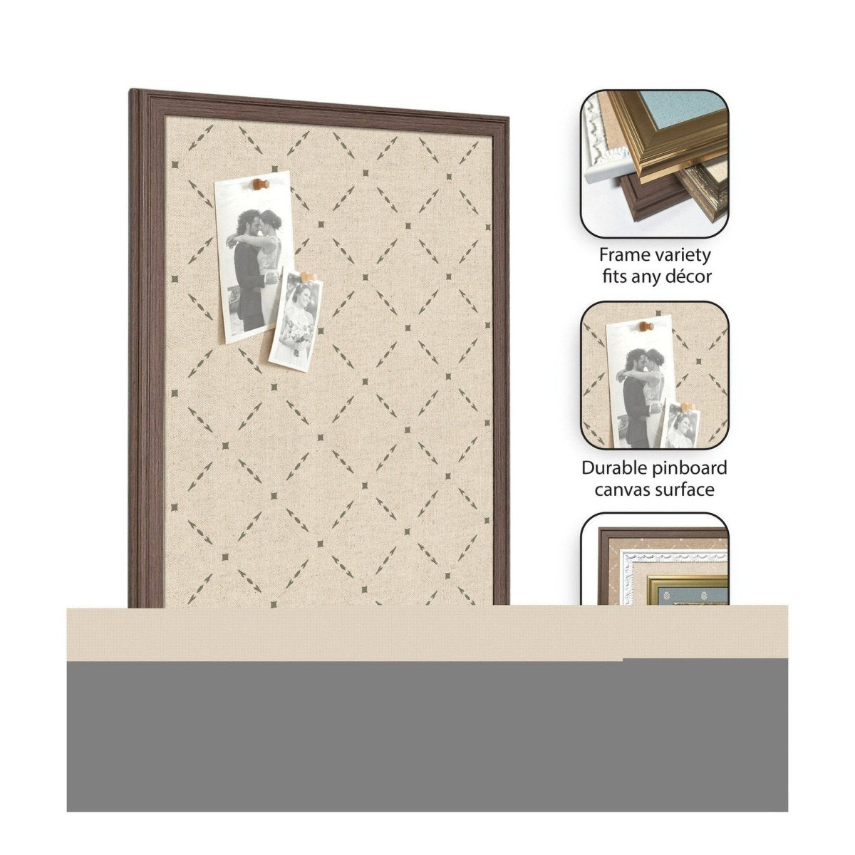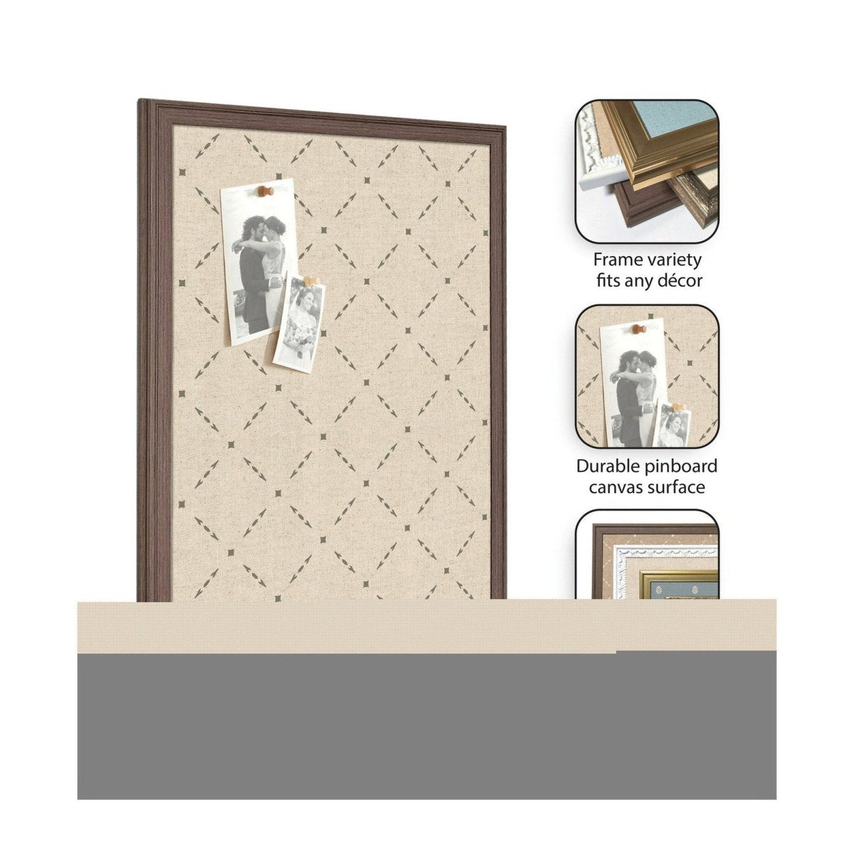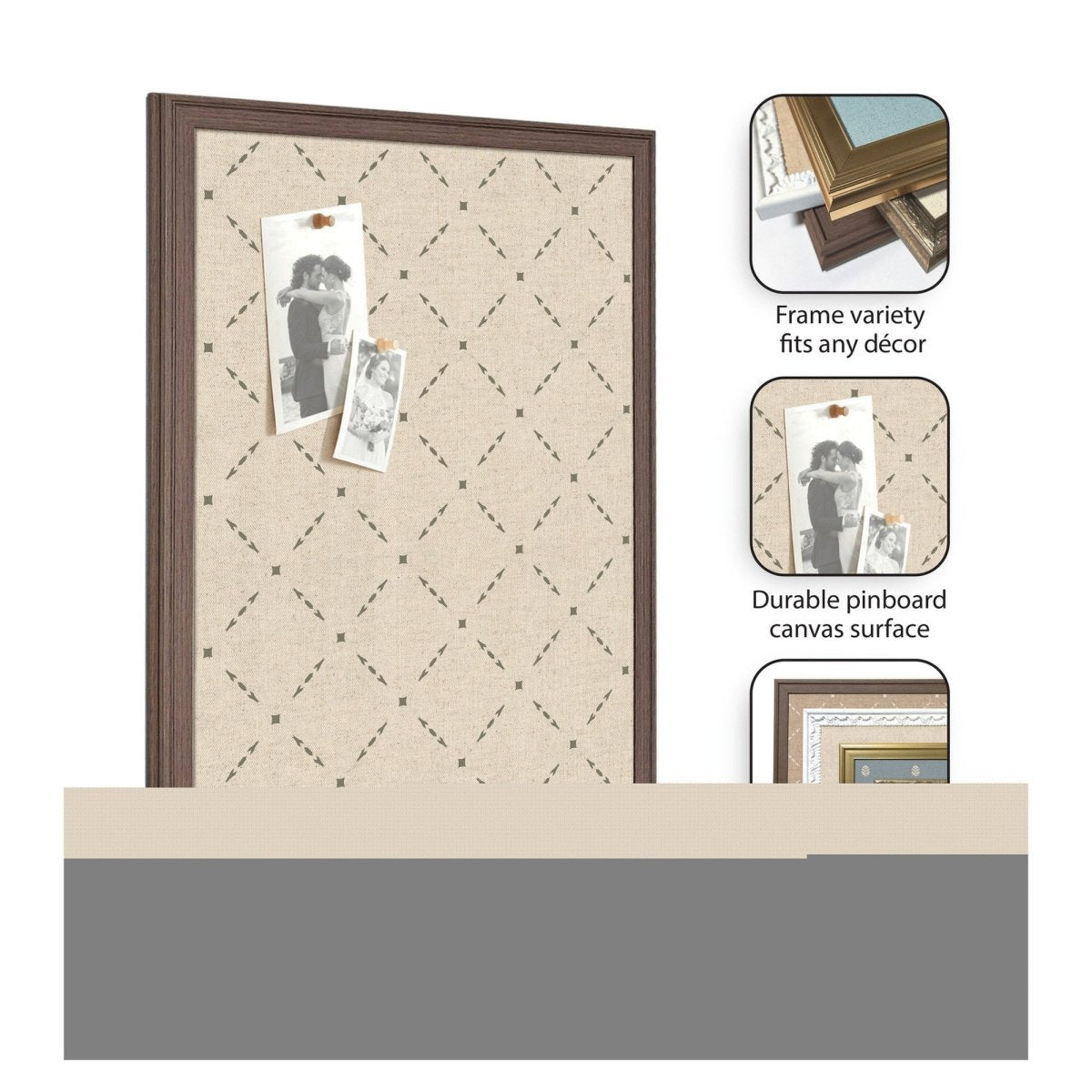 Designed for real life, the fabric pinning surface allows pins to push in fully — no awkward half-pins or lost keepsakes. Hang photos, wedding invitations, holiday cards, kids' artwork, or important notes with ease. The lightweight frame and included hanging hardware make installation quick and hassle-free.