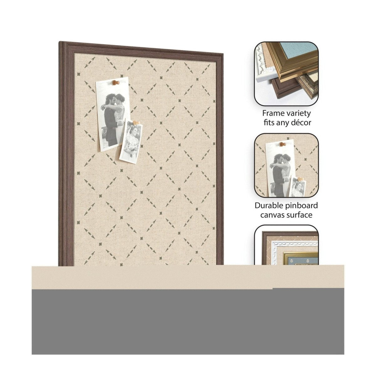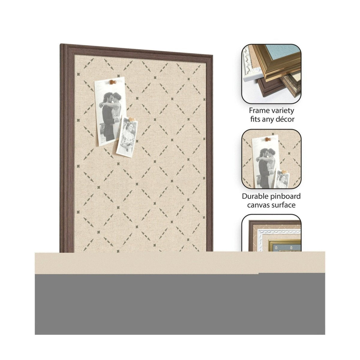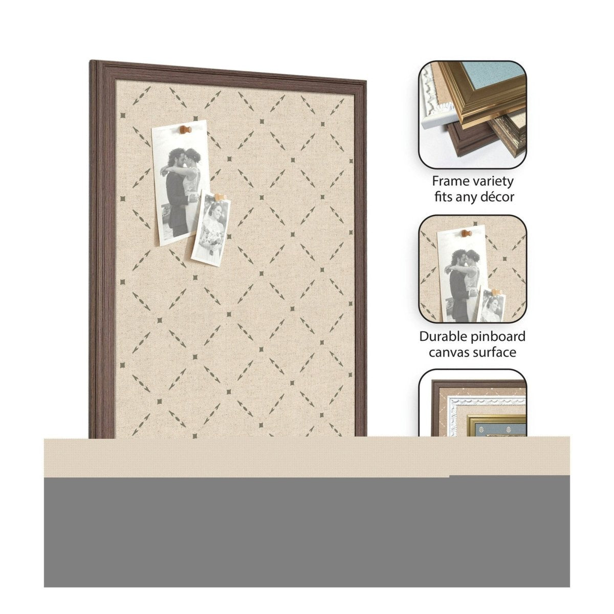 Designed for real life, the fabric pinning surface allows pins to push in fully — no awkward half-pins or lost keepsakes. Hang photos, wedding invitations, holiday cards, kids' artwork, or important notes with ease. The lightweight frame and included hanging hardware make installation quick and hassle-free.