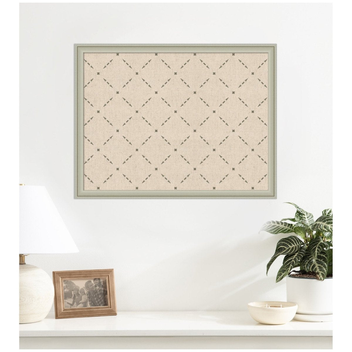 The Green Lattice Print Pinboard brings a designer touch to everyday organization. Its neutral linen textile surface is accented with a sophisticated green lattice print — rooted in the belief that a well-organized space should also be a beautiful one. Whether you're curating a gallery of memories or keeping track of daily essentials, this pinboard makes it effortless and elegant.