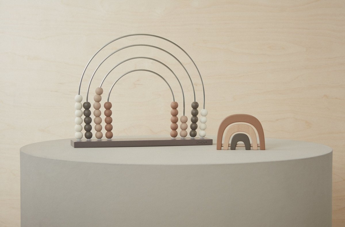 Stimulate the child's motor skills and senses with the Rainbow Rattle, which is made of 100% beech wood and designed in calm and warm colors.