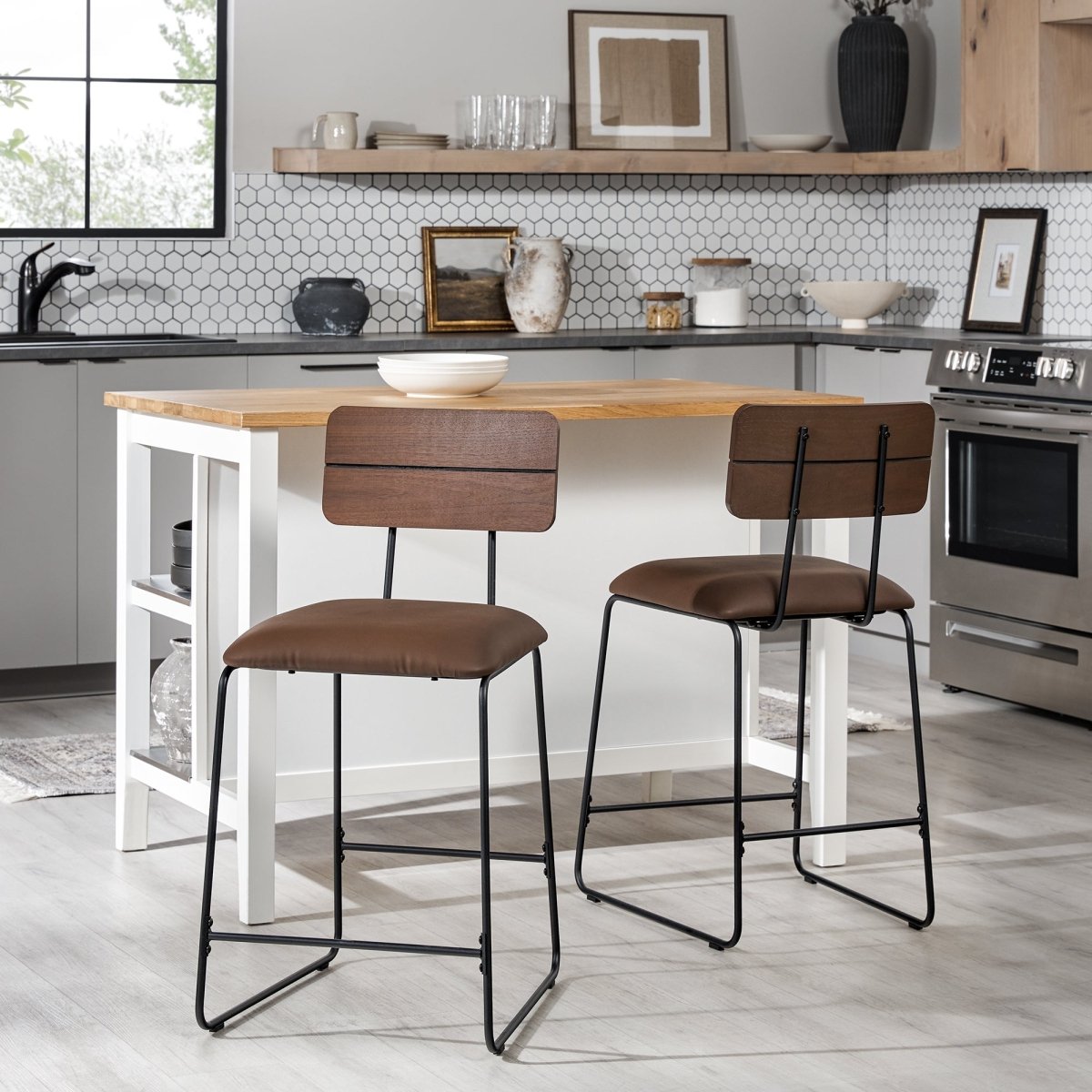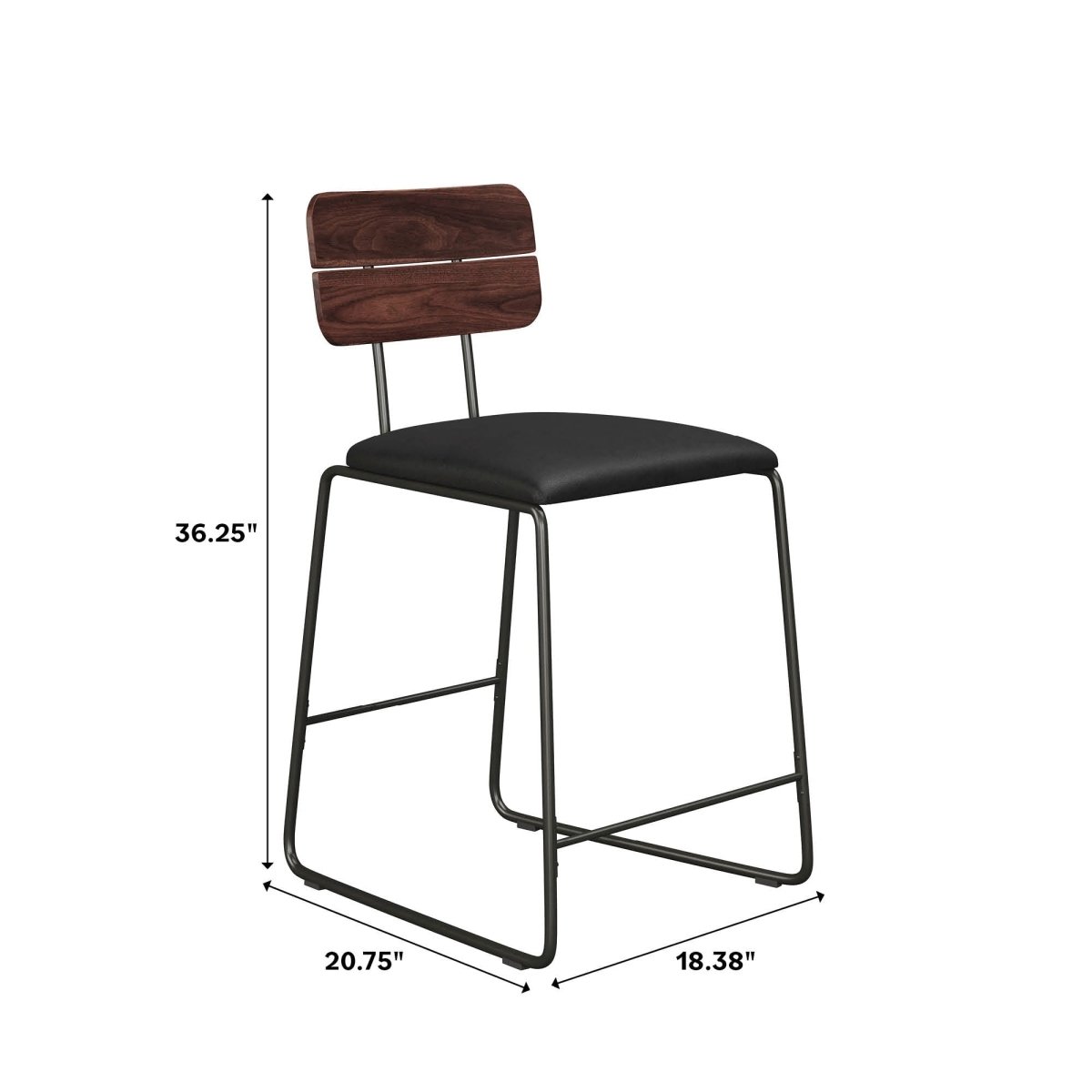 Whether it’s in your apartment, condo, or forever home, this modern counter stool lends a fresh look with its mixed-material design and comfortable seating. A curved wooden backrest ensures you have support while you eat, chat, or meal prep, and a foam-filled upholstered cushion with a fire and water-resistant fabric cover lends added comfort and impressive function. Its warp-resistant MDF and sanded black metal build means this sturdy stool will pass the test of time, and a quick, 20-minute assembly time helps you set up your dream dining space in no time, whether you’ve got one or four of these pieces.