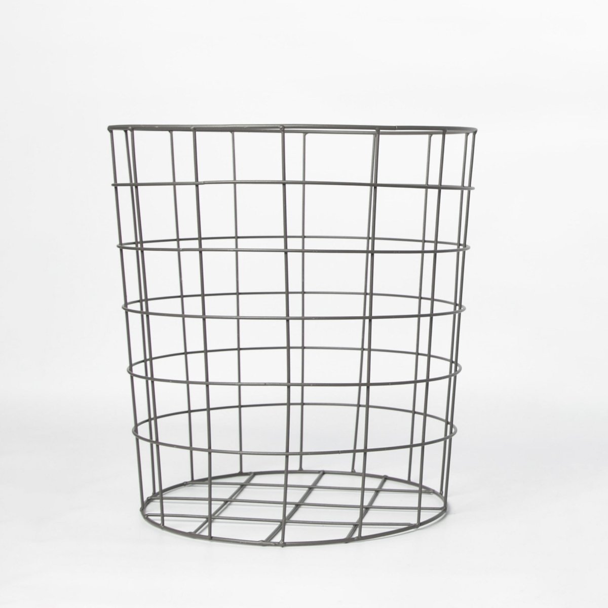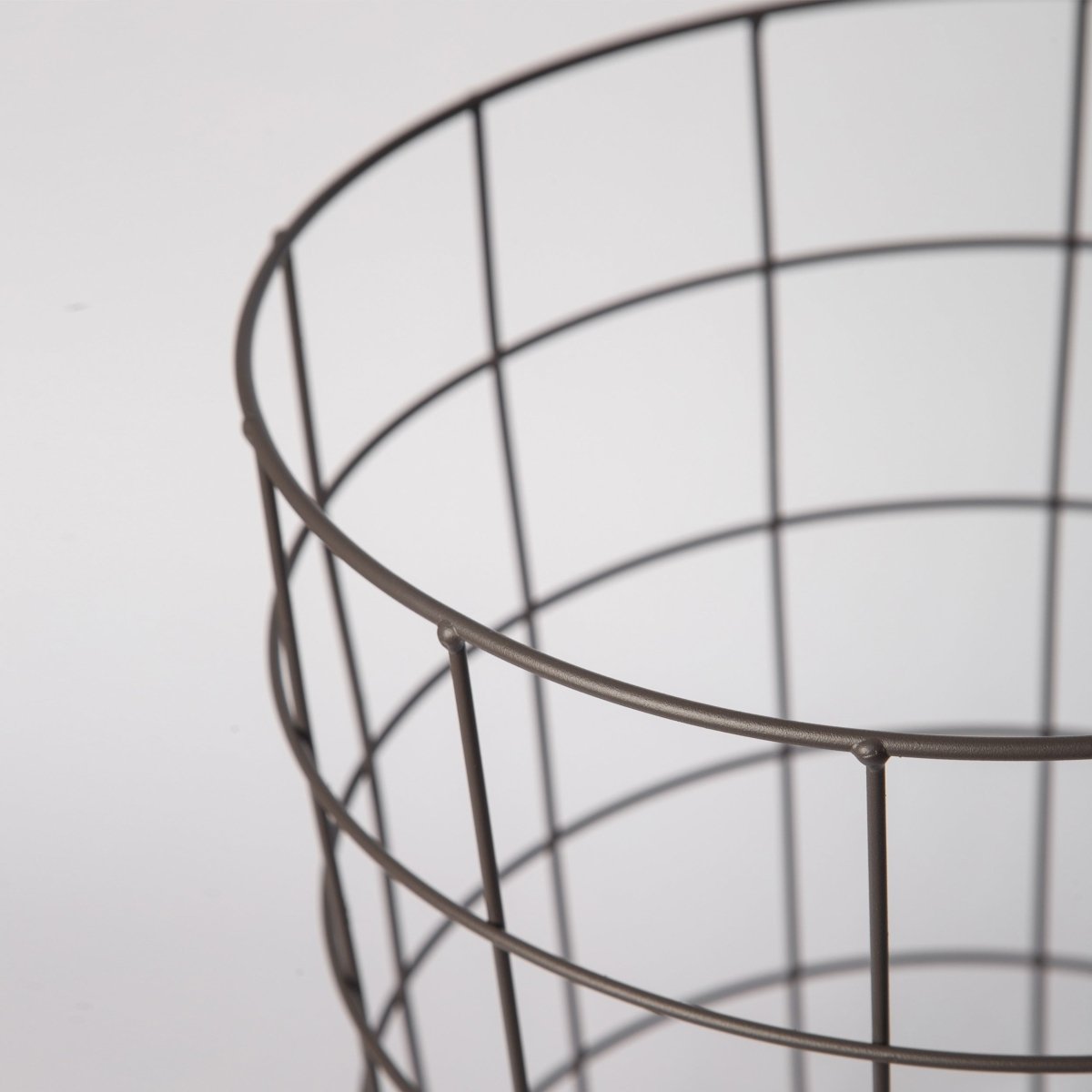 The open wire basket design allows air circulation, making it ideal for storing fresh produce, towels, or items that benefit from ventilation. The round shape maximizes storage capacity while fitting naturally into corners, under tables, or on shelving units. The grey finish complements both contemporary and industrial decor styles without overwhelming your existing color scheme.