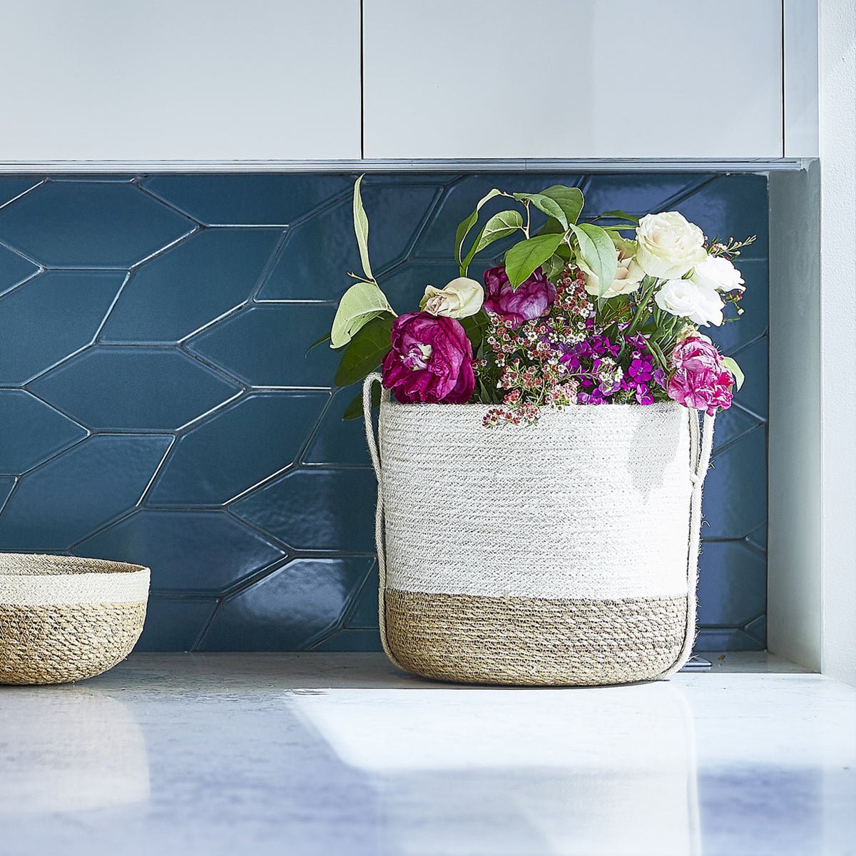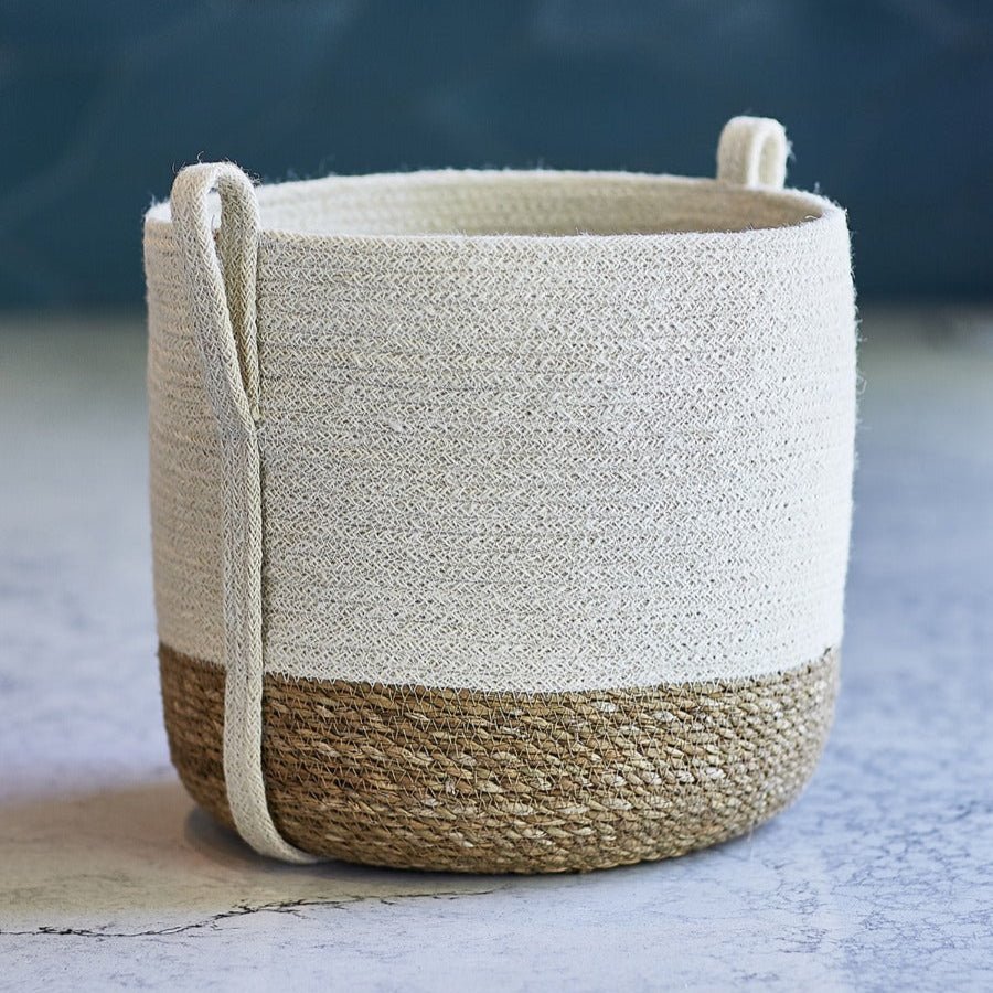 Our Savar Basket with side handle is made of 100% natural fiber - raw jute and seagrass. Every Knot is handwoven by fair trade artisans whose hopes and dreams are put into each thread as they work. Each product is designed and curated by Korissa, sustainably handmade by Fair Trade artisans in Bangladesh.