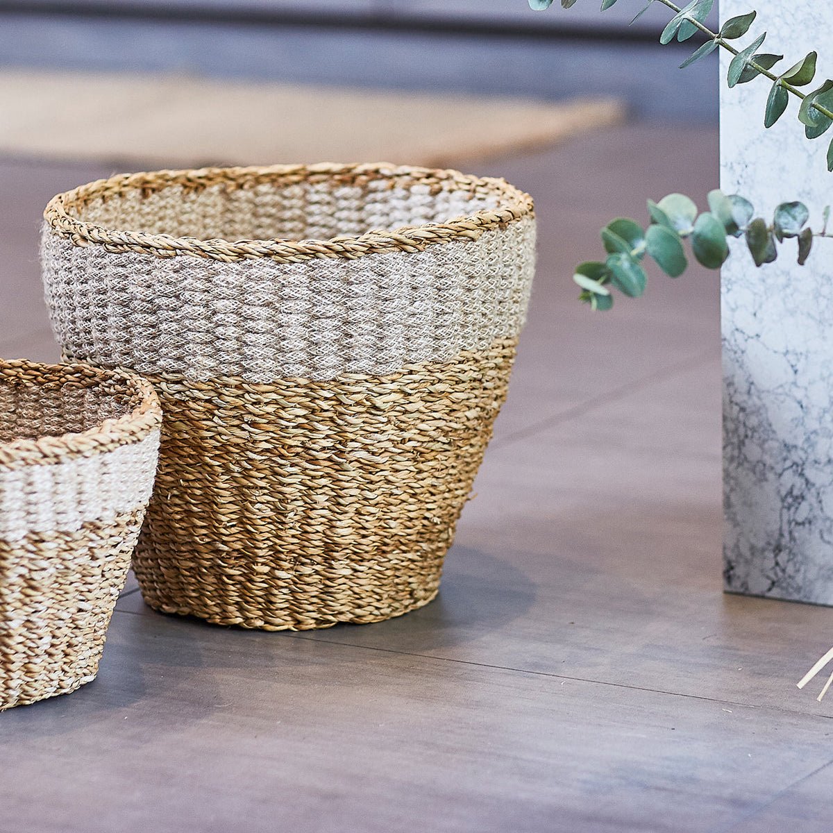 Add natural texture to your home for your eyes - sturdy handwoven cachepot basket from natural seagrass and soft jute yarn. They come in two range of sizes for your plant to mail and everything more. Each product is designed and curated by Korissa, sustainably handmade by Fair Trade artisans in Bangladesh.