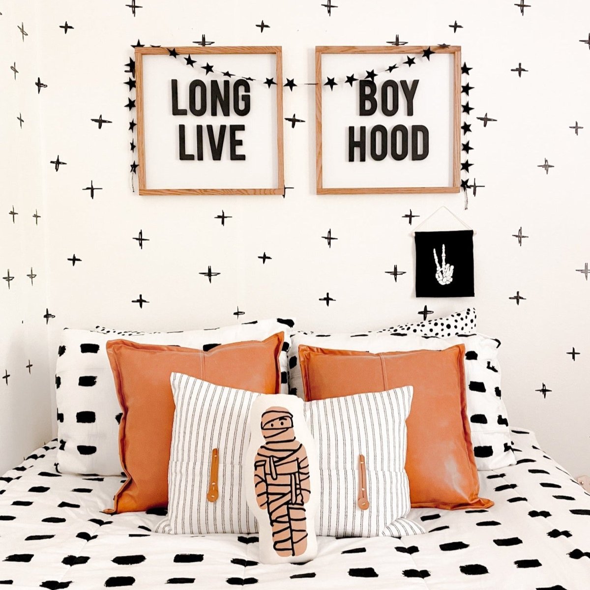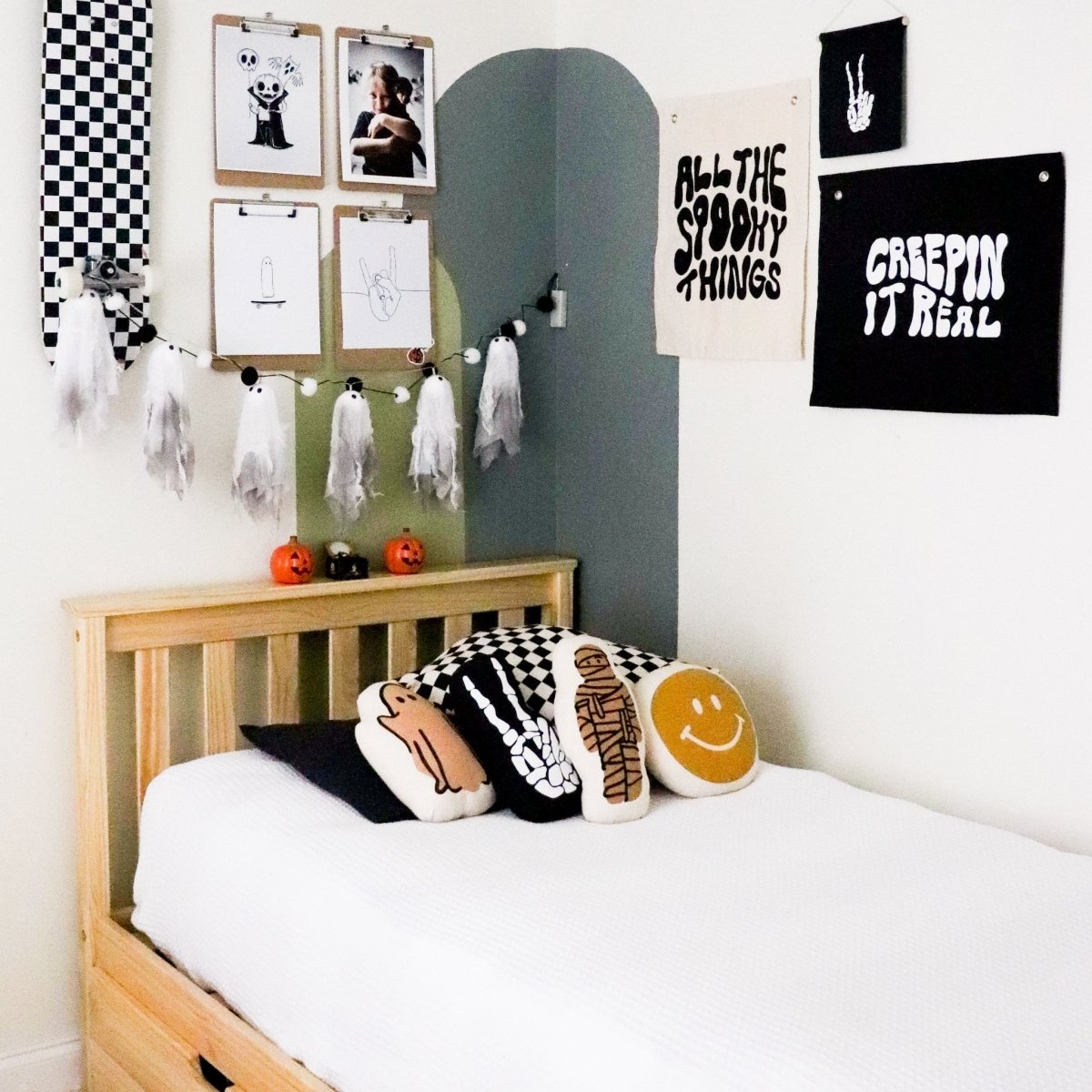 This canvas banner works as Halloween wall decor, year-round bohemian accent, or kids room decoration. The skeleton peace sign design appeals to those who appreciate alternative aesthetics and meaningful symbolism. At 9x7.5 inches, it fits perfectly in small spaces, gallery walls, or as part of larger seasonal displays.