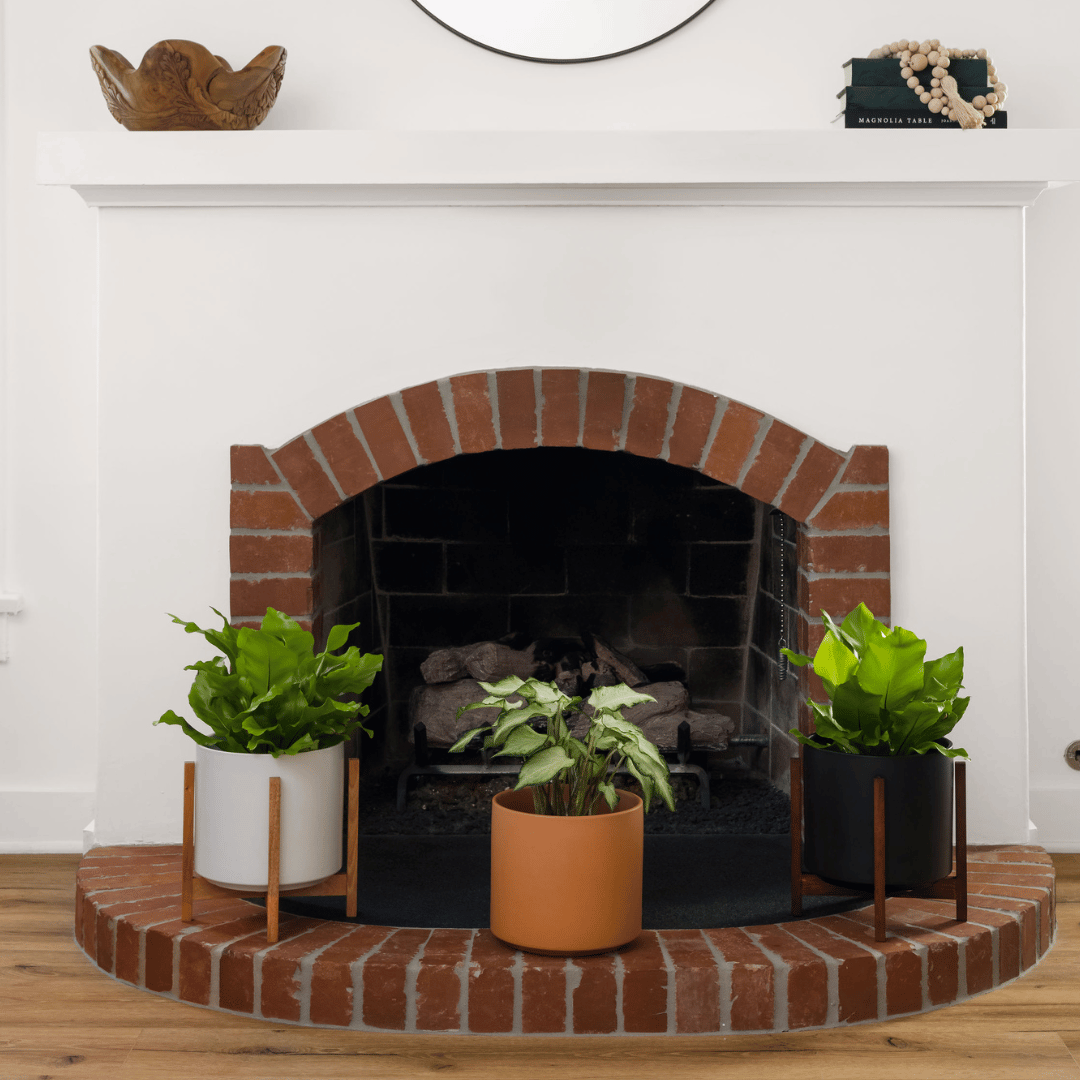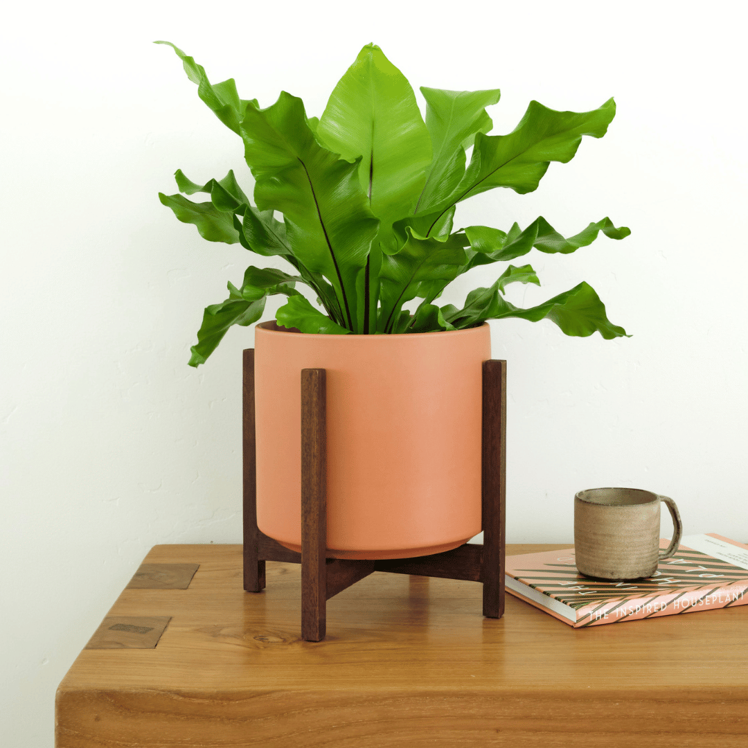 LBE Design 8 Inch Ceramic Cylinder Planter with Mahogany Wood Stand - Matte