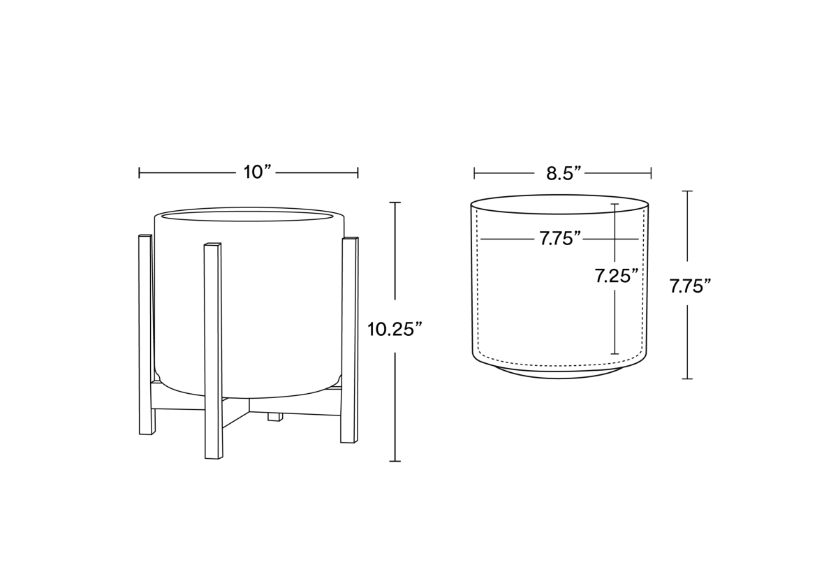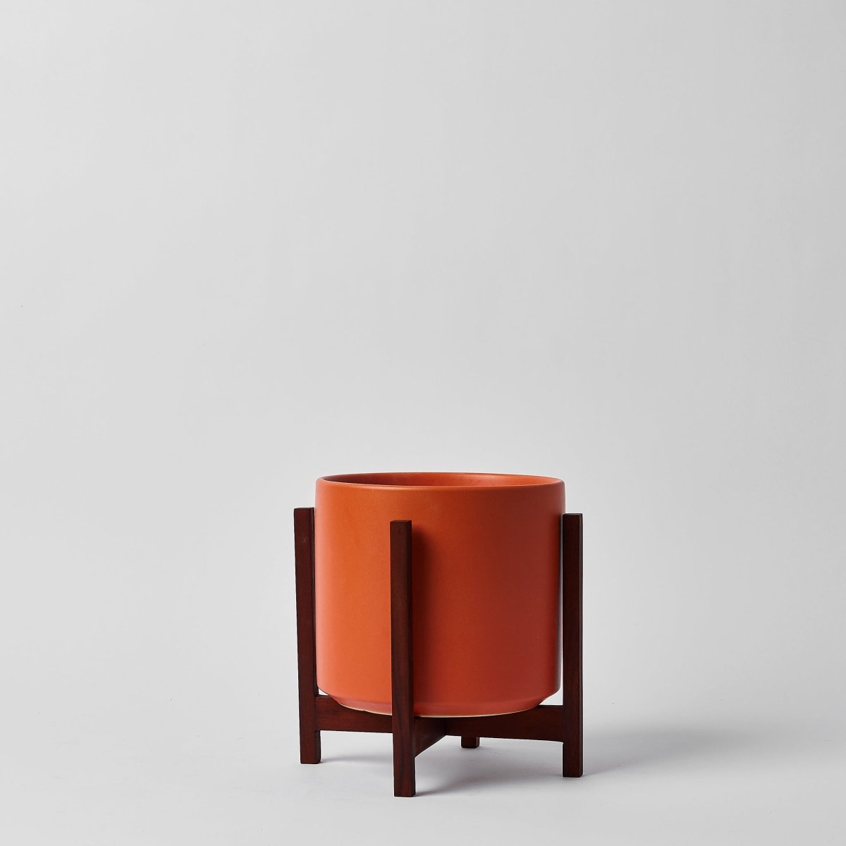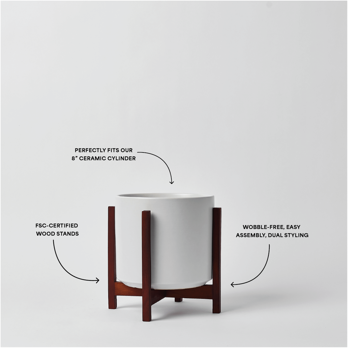8 Inch Ceramic Cylinder Planter with Mahogany Wood Stand - Matte