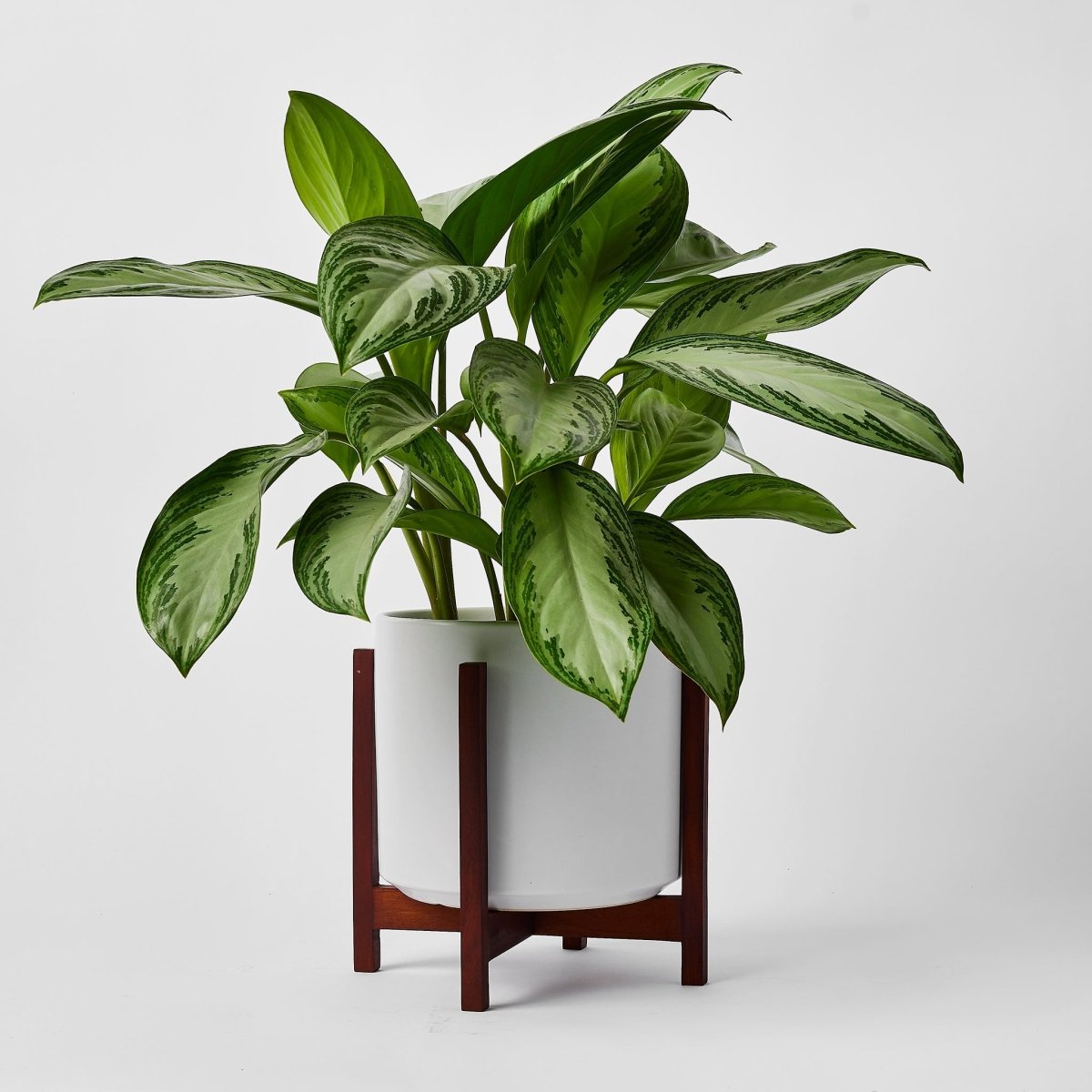 Click here to be notified by email when 8 Inch Ceramic Cylinder Planter with Mahogany Wood Stand - Matte - White / Dark / 8 Inch becomes available.