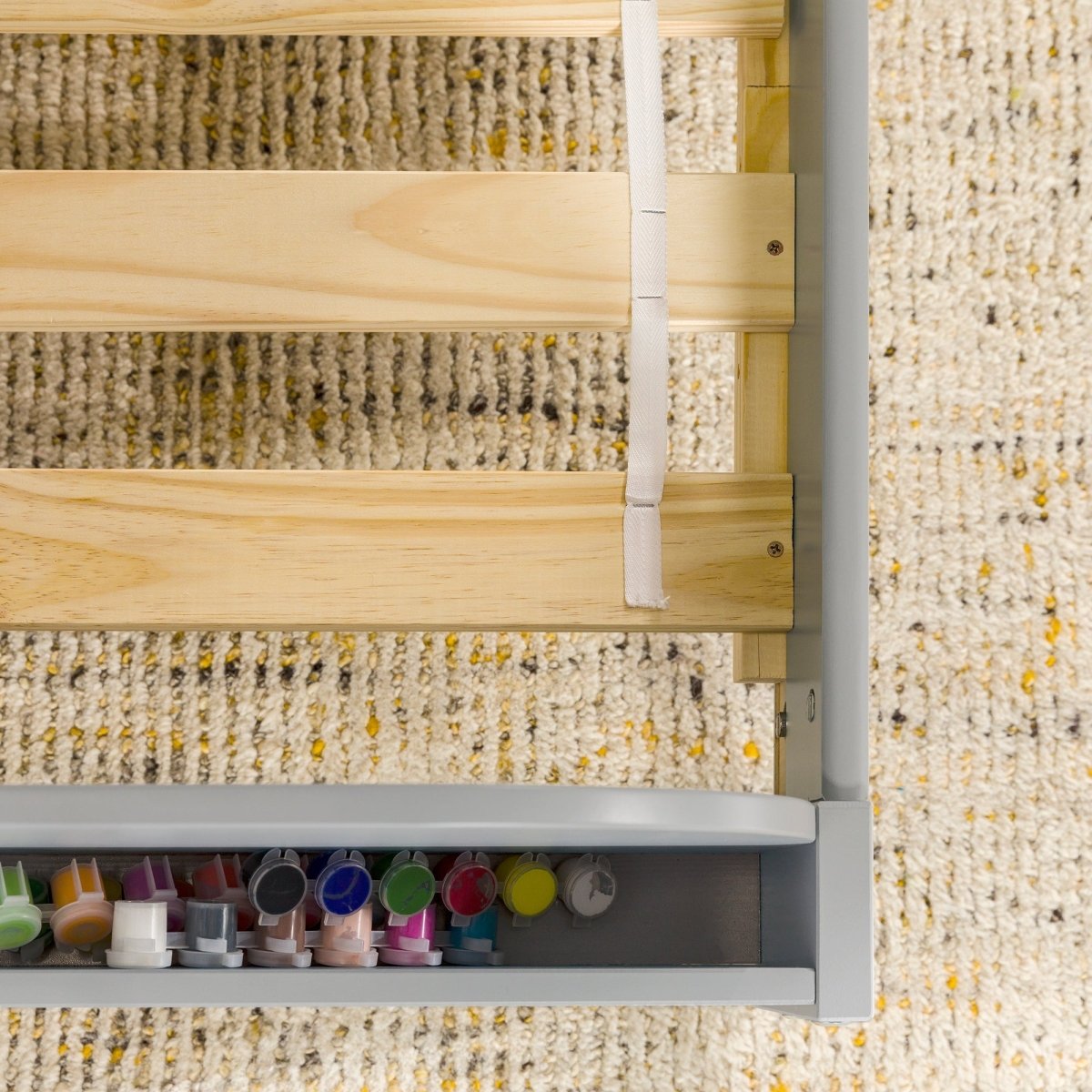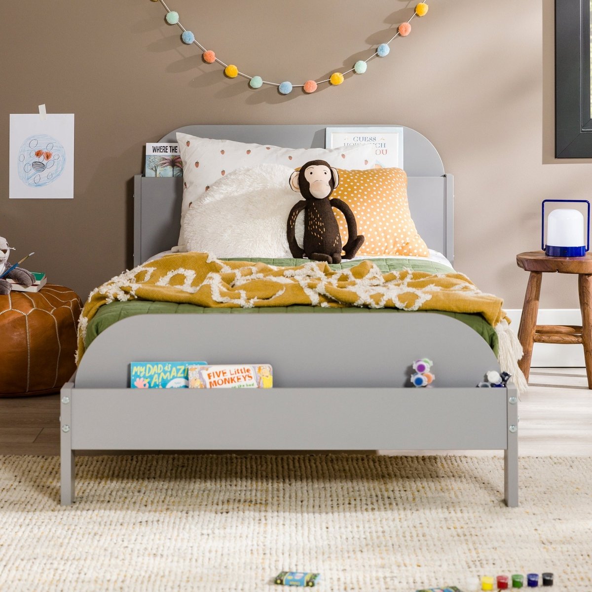 Seamlessly mesh the magical world of make-believe and the mundane day-to-day bedtime routine into one enchanting experience with this unique twin bed. Its classic build is the perfect staple in your child’s bedroom, while subtle slots on both the headboard and footboard offer an accessible display for novels or storybooks. When your littles outgrow their picture books, the slots leave room for trendy décor like a letterboard or memorabilia board. Whether you’re snuggled up beside them rehearsing their favorite fairytale, or they’re immersed in their own page-turner, let this solid wood twin bed help your kids reach for their next read with ease and inspire their love of literature.