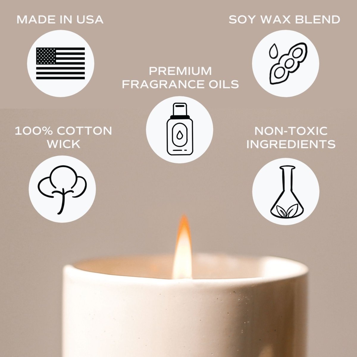 This candle is formulated without gluten, phthalates, or toxic ingredients. The premium fragrance oil is cruelty-free and made in the USA. Every component meets high standards for wellness-conscious consumers who prioritize both quality and ethical production.