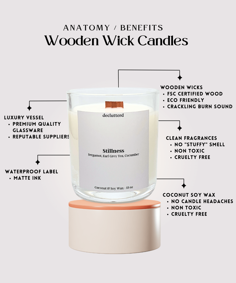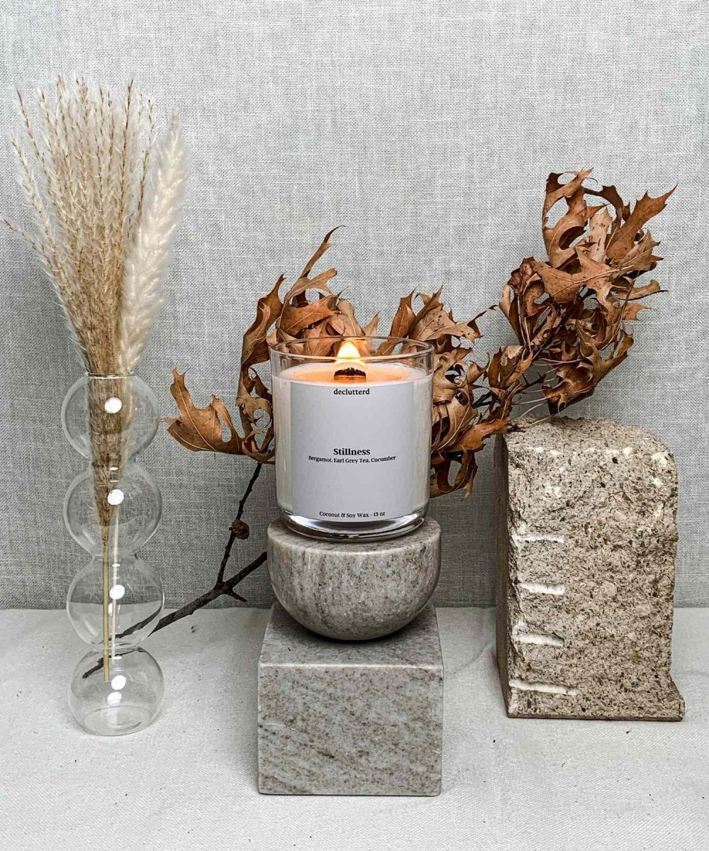 Stillness is not just a wood wick candle; it embodies declutterd's mission - guiding individuals to find calm amidst the chaos.
