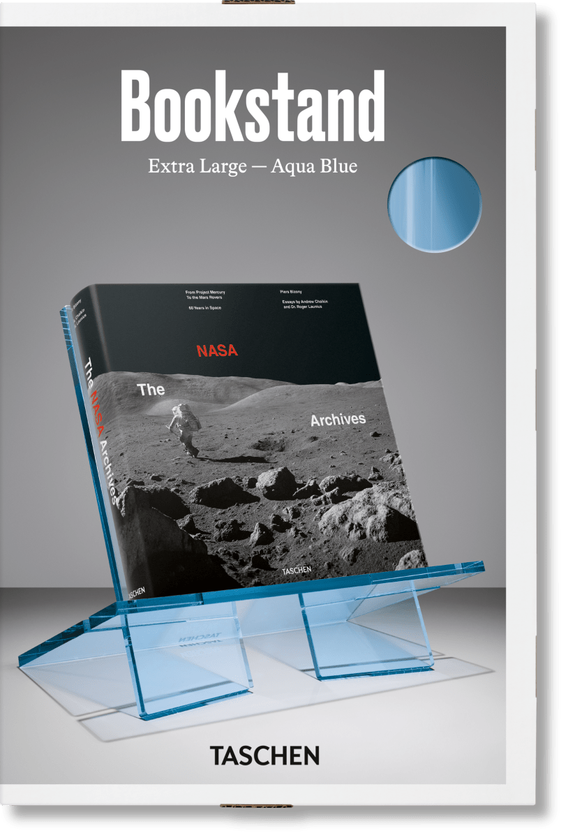 Perfect for coffee tables, bookshelves, or gallery spaces, the stand supports books up to 19 inches in height or width. Whether you're displaying your TASCHEN art books closed or open for browsing, this modern book stand presents them with sophistication and care.