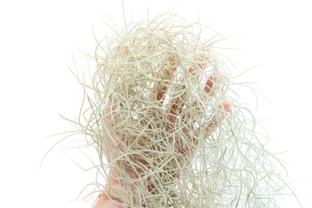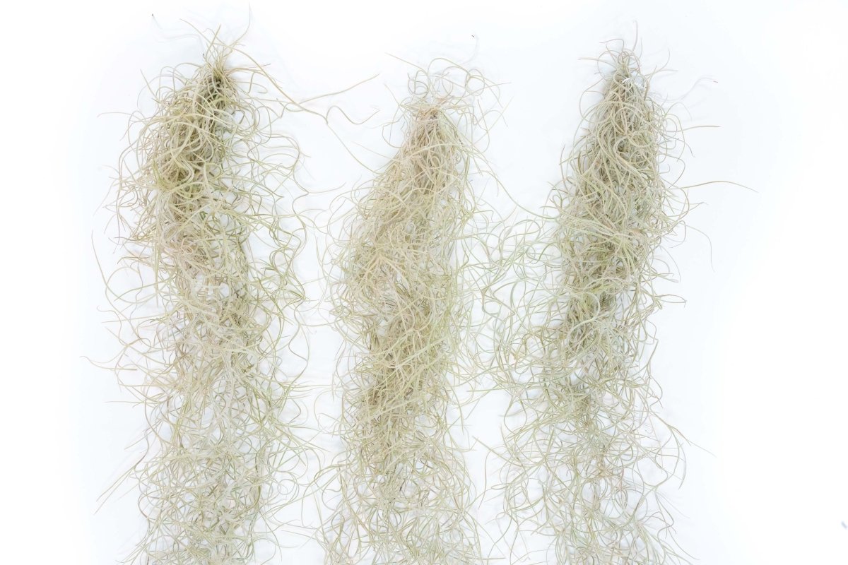 This Guatemala variety of Spanish Moss displays a distinctive gray coloration and produces long, flowing strands ideal for both decorative and functional applications. As a living Tillandsia species, this moss absorbs moisture and nutrients from the air, requiring no soil and minimal maintenance to flourish.