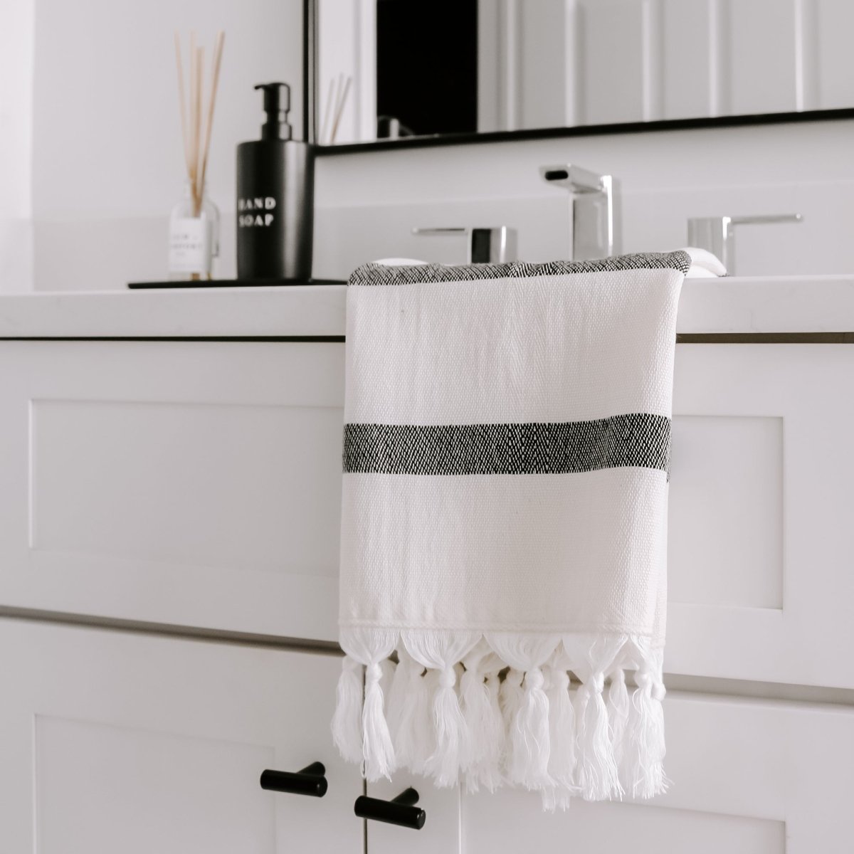 Hand-Woven Turkish Cotton Bamboo Hand Towel - Natural Black Stripe