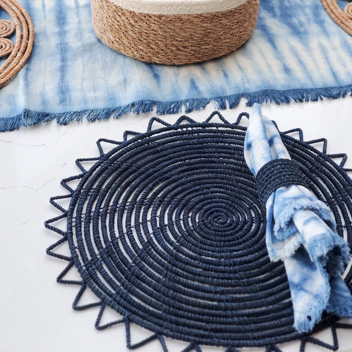 Woven Palm Fiber Napkin Ring, Indigo Blue - Set of 4