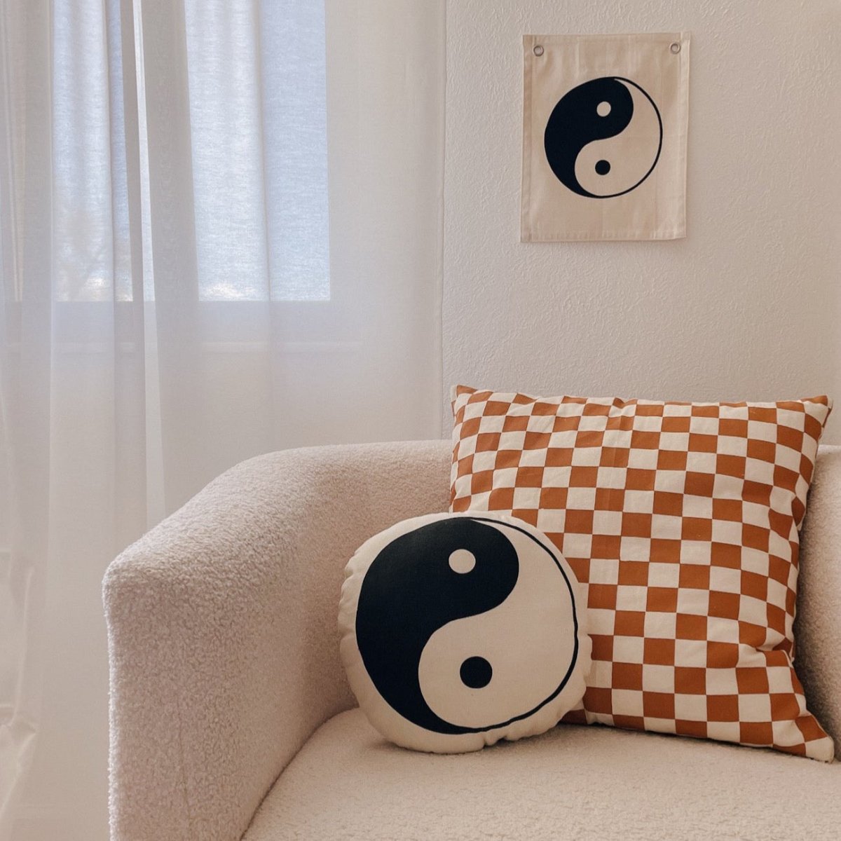 This Yin Yang Canvas Banner brings balance and harmony to your living space. Each banner is sewn and screen printed by hand on natural canvas by skilled Kenyan artisans, making every piece unique.